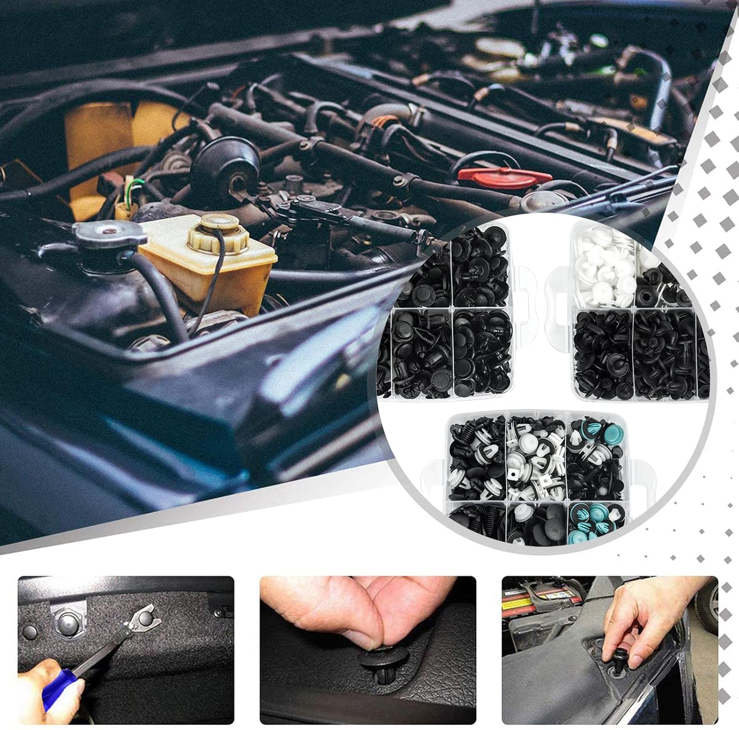 - UNIVERSAL AUTOMOTIVE CLIPS KIT: 801 PCS great assortment push retainer kit-24 most popular size, with 1 Blue Fastener Remover, fitting for door trim, radiator shield yoke, fender, bumper, side skirt, grille, engine cover and splash shield retainers replacement,compatible with Ford, GM, Chrysler, Toyota, Honda and more