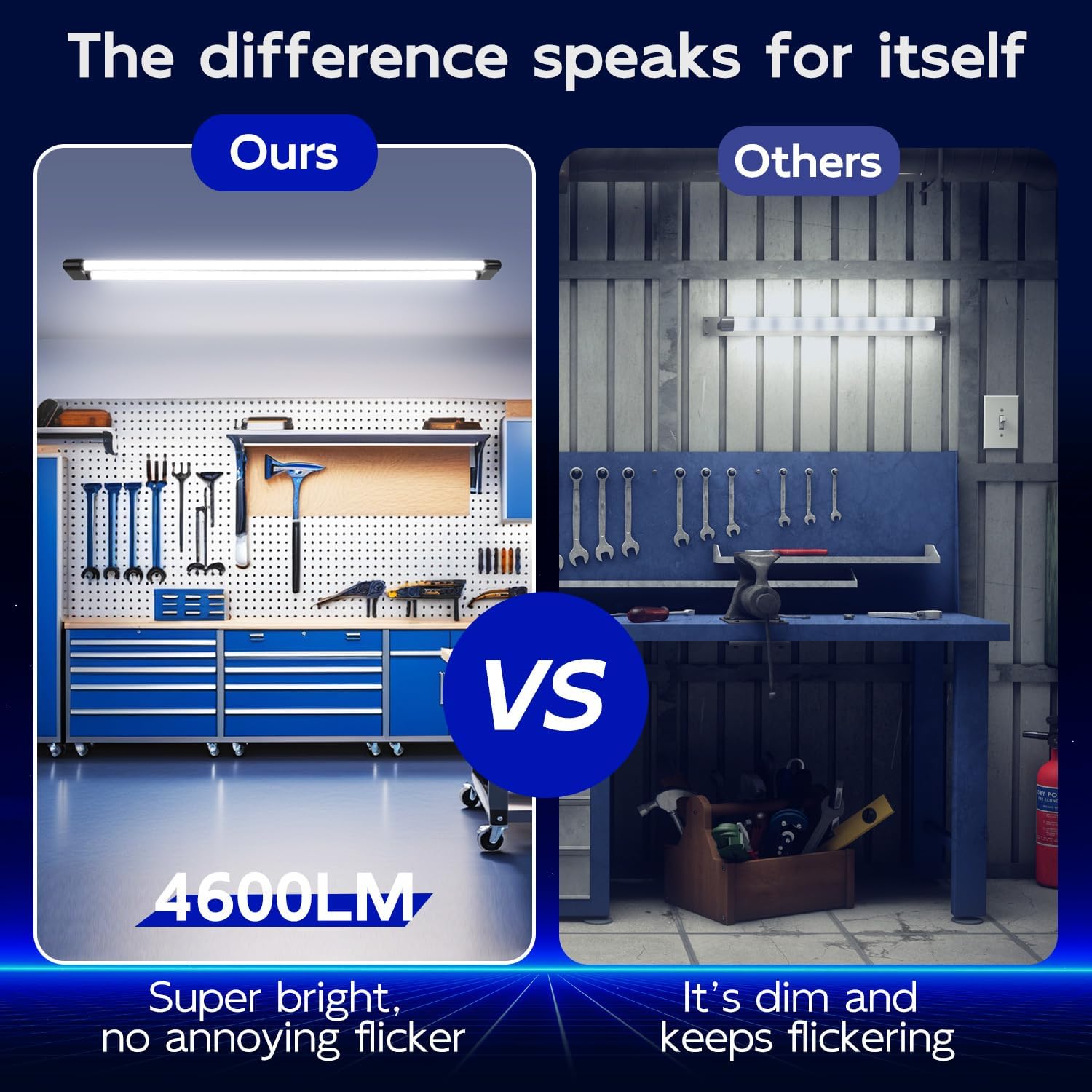 - Linkable Design οΌ Easily connect up to 6 pcs of these 4ft linkable LED shop lights using the plug connection. Create a well-lit environment in your garages, workshops, workbench areas, storage areas, warehouses, basements, and equipment rooms.