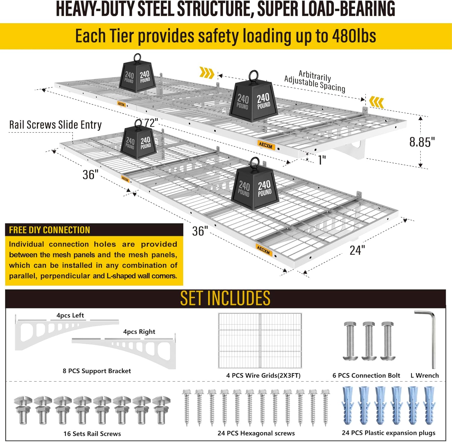 - 1120 lb Load Tested: Our garage wall shelves undergo rigorous testing, with each individual unit supporting 280 lbs. The 4-pack (2x3ft) offers a total weight capacity of 1120 lbs