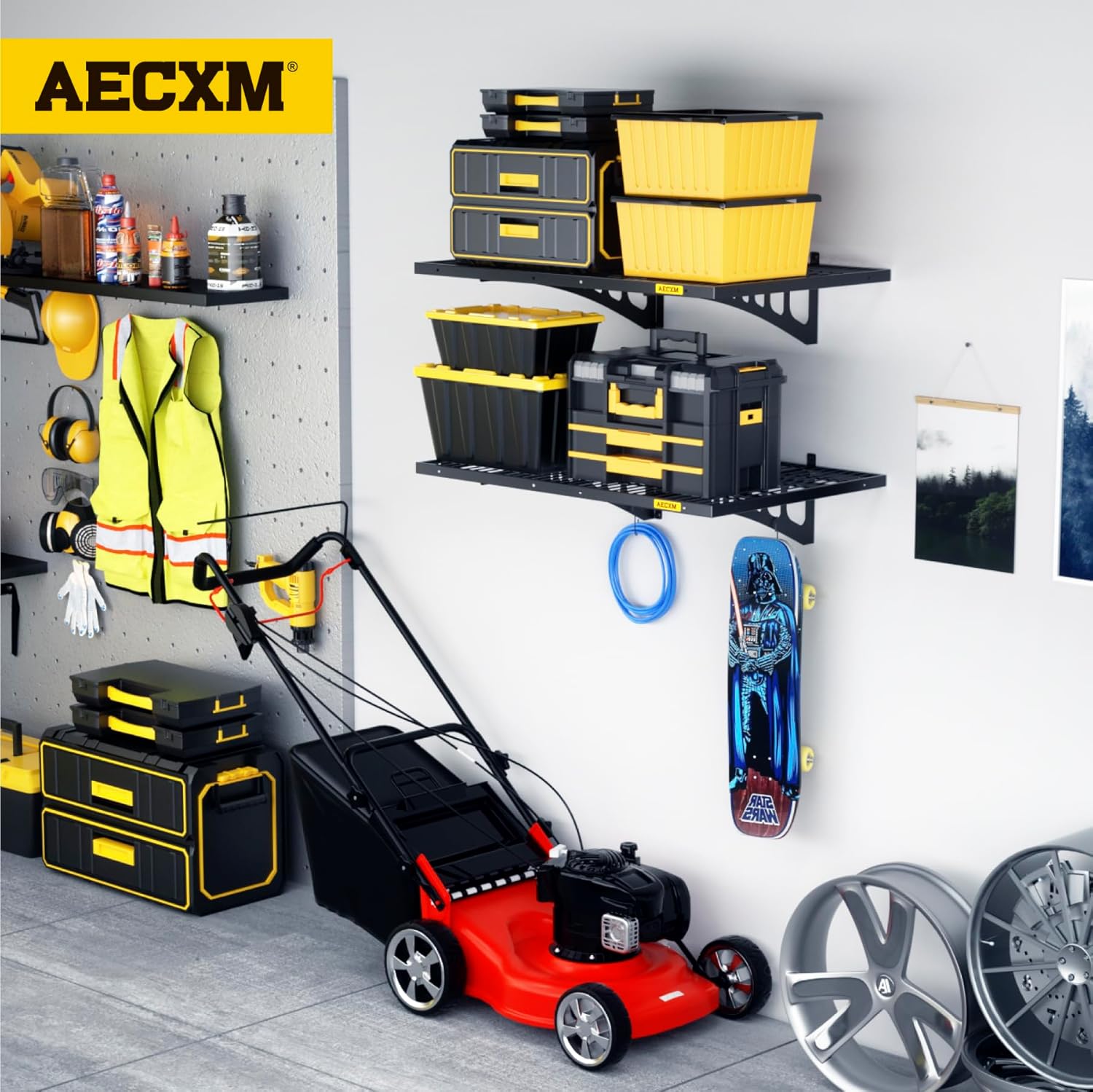 - Innovative Design: Unlike fixed-spacing systems, Aecxm garage storage shelves wall mounted feature sliding rail screws, allowing installation on wood studs spaced anywhere within the 48-inch garage shelf length. No more compatibility issues with uneven stud spacing