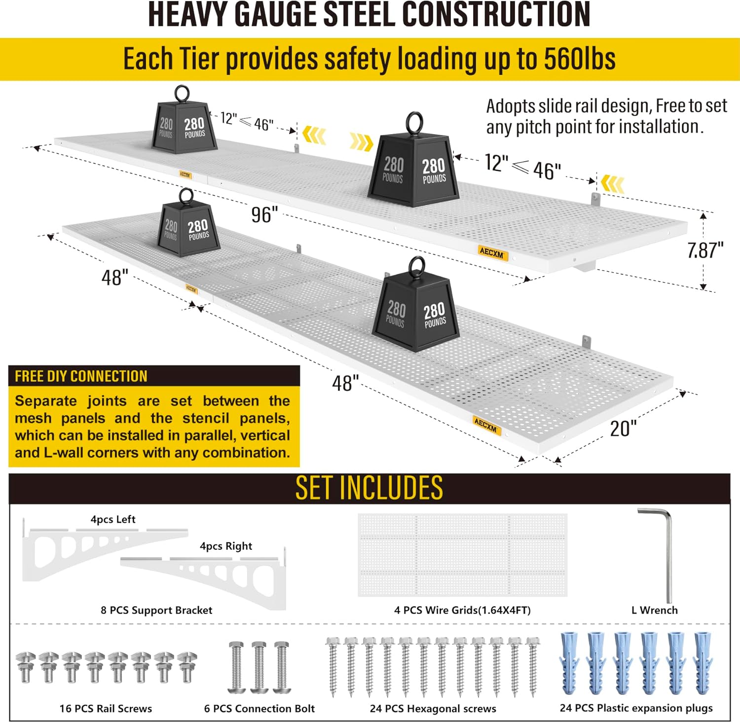 - Premium Craftsmanship: This garage wall shelving is crafted from a single steel sheet, precision-stamped and folded for strength. Unique high-density hole design enhances functionality while delivering a sleek, modern aesthetic