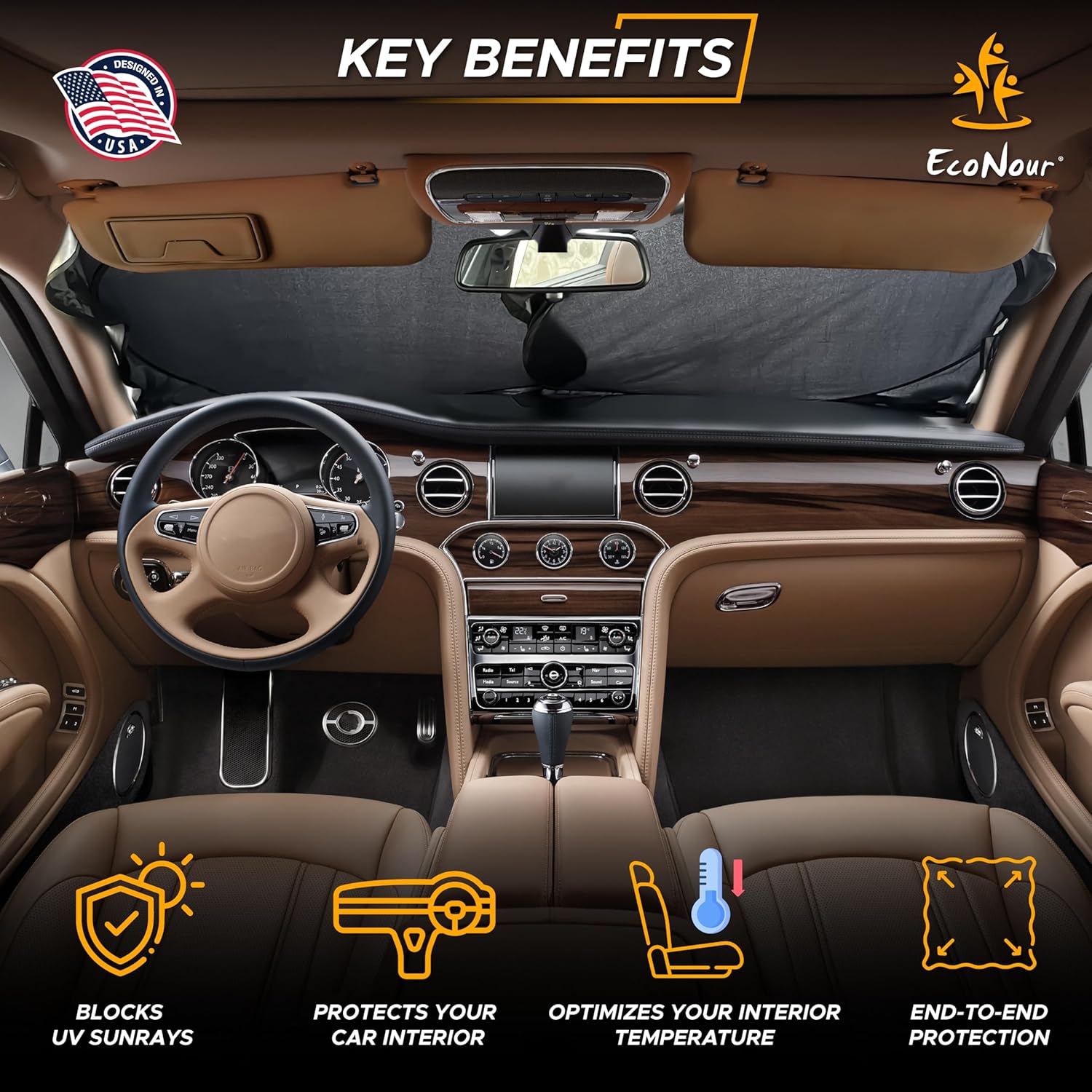 - Protects Your Car Interiors: EcoNour’s car window shades provide exceptional protection against harmful UV rays, preventing heat damage to your dashboard, seats, and electronics. This durable window sun blocker acts as a reliable heat shield automotive accessory, ensuring a cooler interior and long-lasting protection.