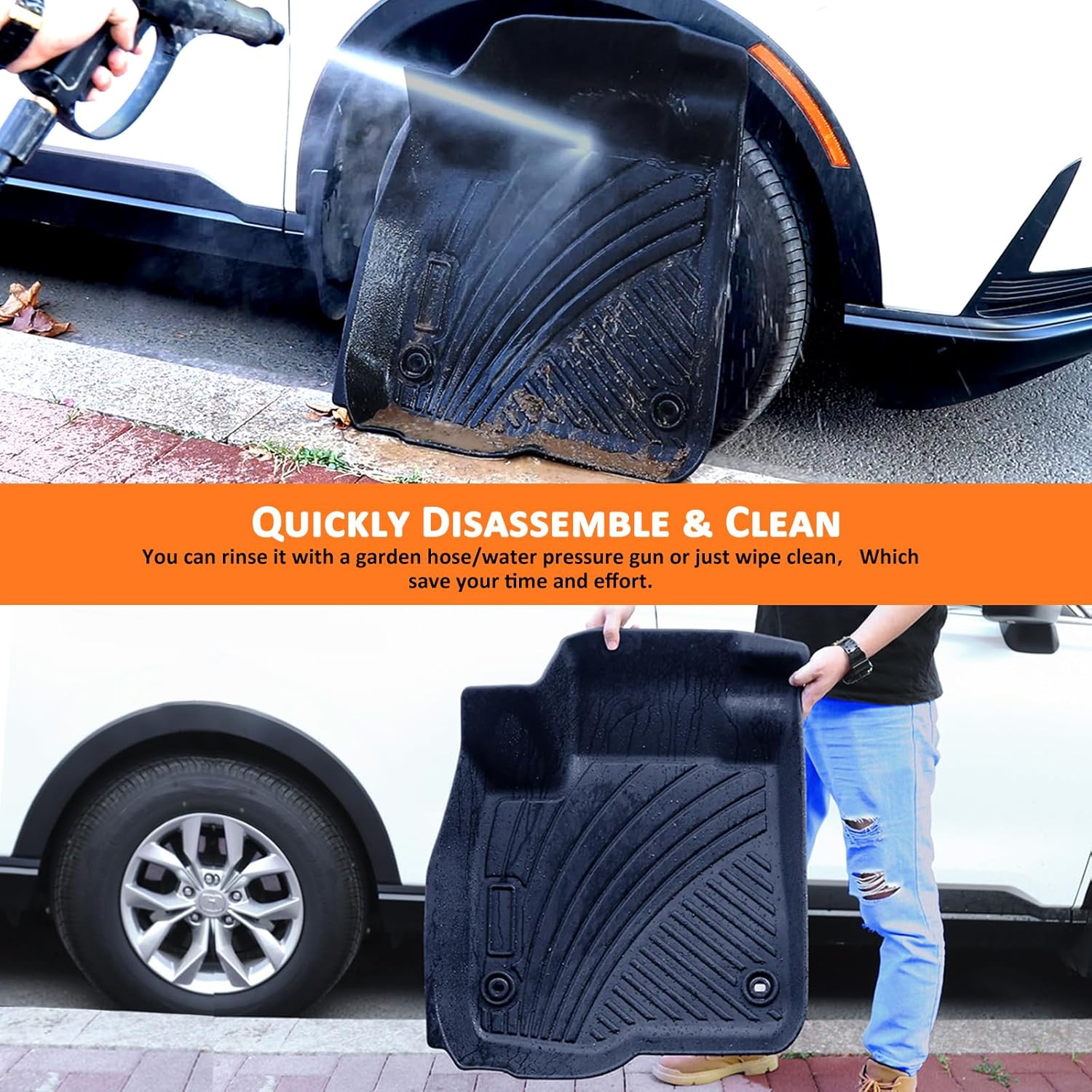 - ăEasy To CleanăBinmotor floor mats are waterproof, just wipe smudges off with a damp cloth or wash and dried. They are incredibly easy to clean.