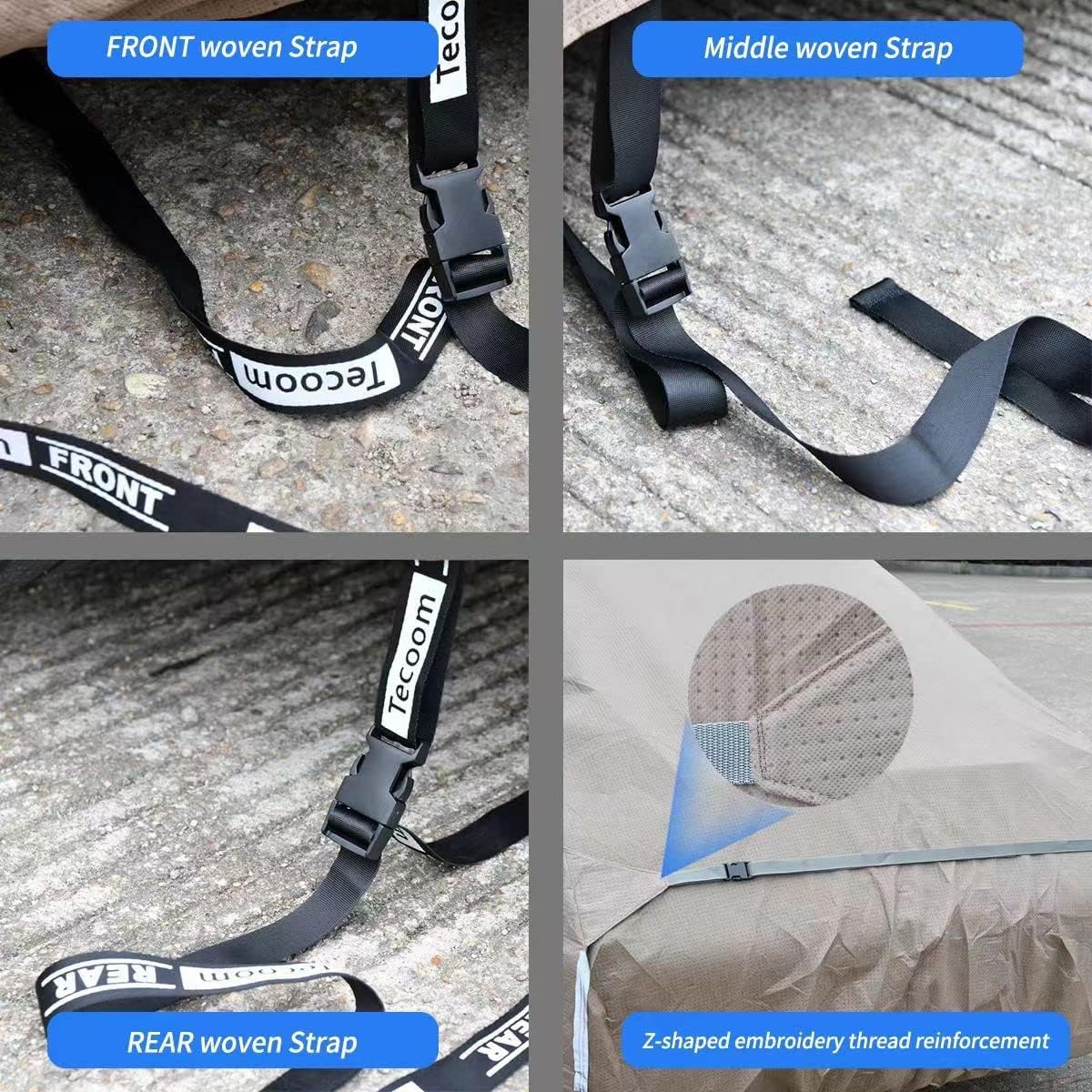 - Premium Material: 1. Tecoom 3 layers car cover is made of super Breathable-Waterproof thick shell non-woven material, lighter and firmer. 2. Good sun protection and UV resistance to keep the car cool in summer. 3. Thicker and softer lining protects the car's surface paint