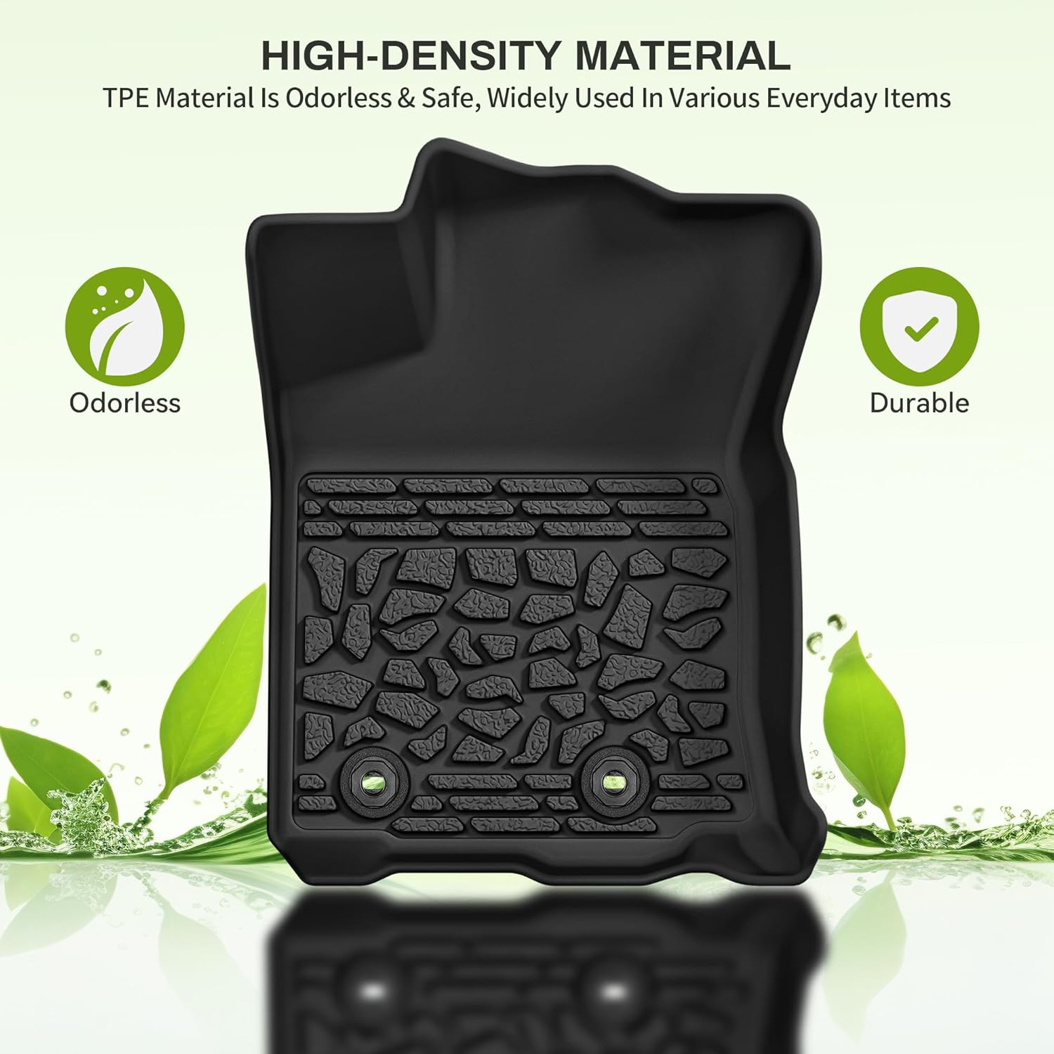 - Weather Shield: Automotive all weather floor liners are made from total renewable TPE material that is completely odorless and suitable for various weather conditions such as rain, snow, hot desert, etc.; An ideal choice for people who are constantly outdoors