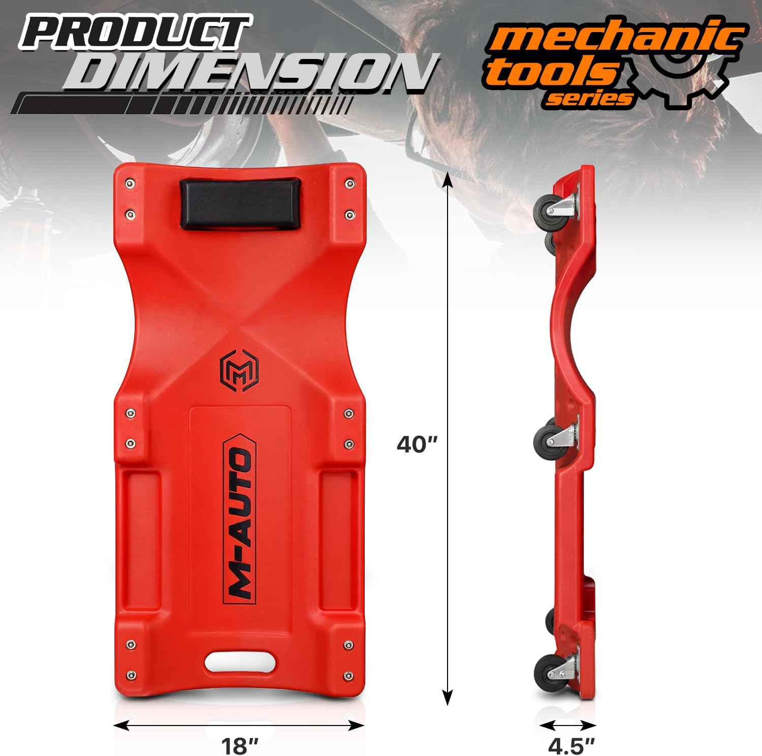 M-AUTO Mechanic Roller Creeper with Padded Headrest, 40" Dual Tool Trays Rolling Creeper for Garage Shop Auto Work Repair, Noiseless Swivel Casters, Red