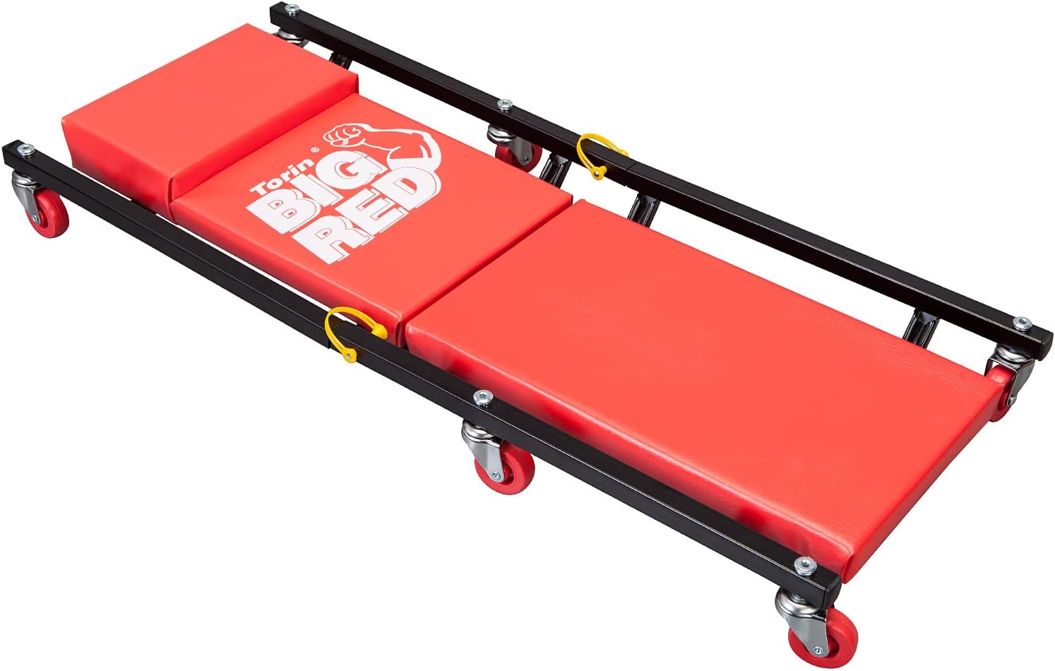 BIG RED 36" 2-Piece Padded Rolling Garage/Shop Creeper, Mechanic Cart with Headrest and 6 Casters, Red TR7565R Torin