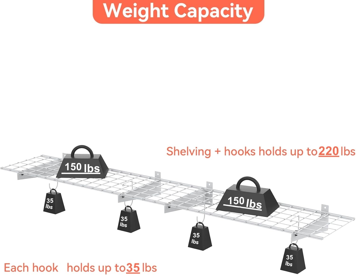 - Solid & Well Constructed: Garage wall mount shelving is made of high quality steel with powder coated finish and well constructed. Holds up to 220lbs/shelf.