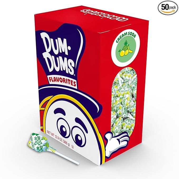 Dum Dums Cream Soda Lollipops - Bulk Candy Bag with Lollipops Individually Wrapped, Single Flavor Gourmet Suckers - 50 Count