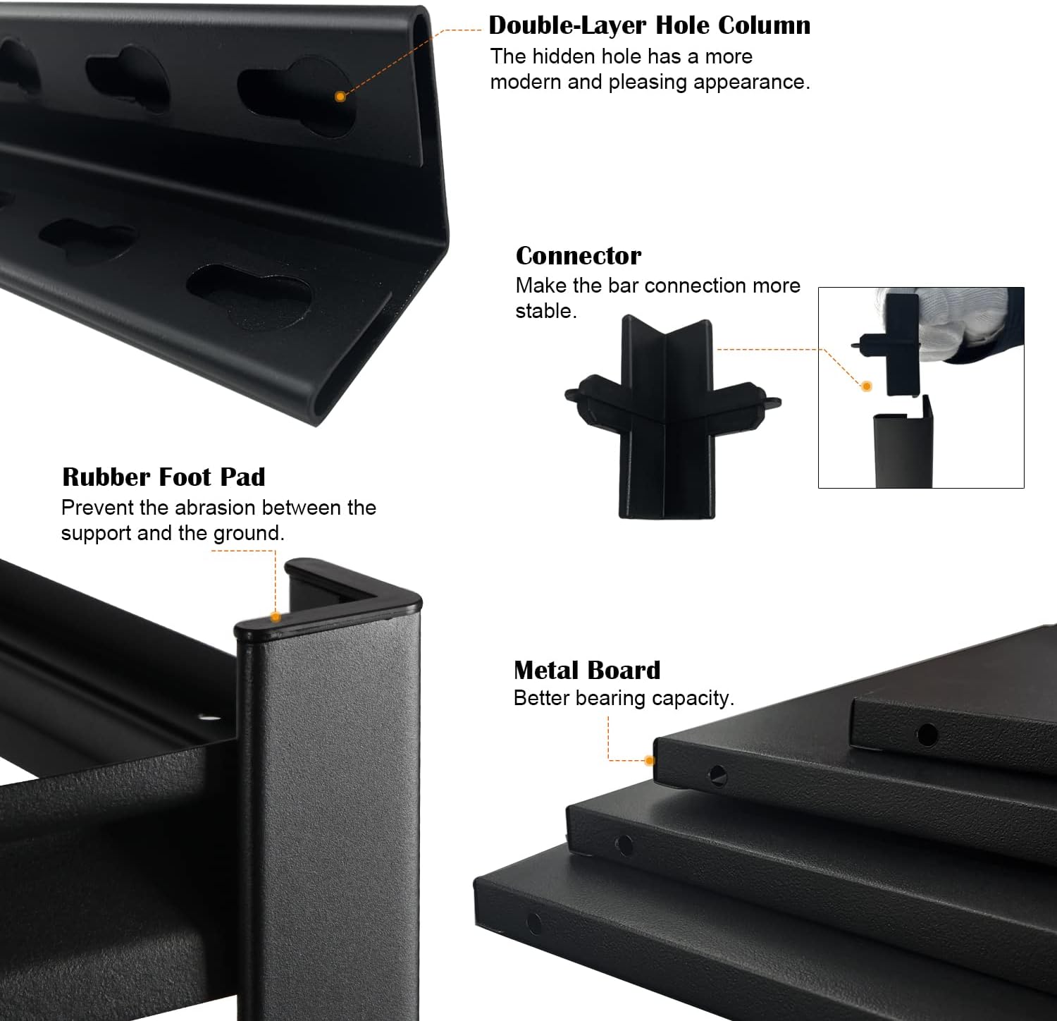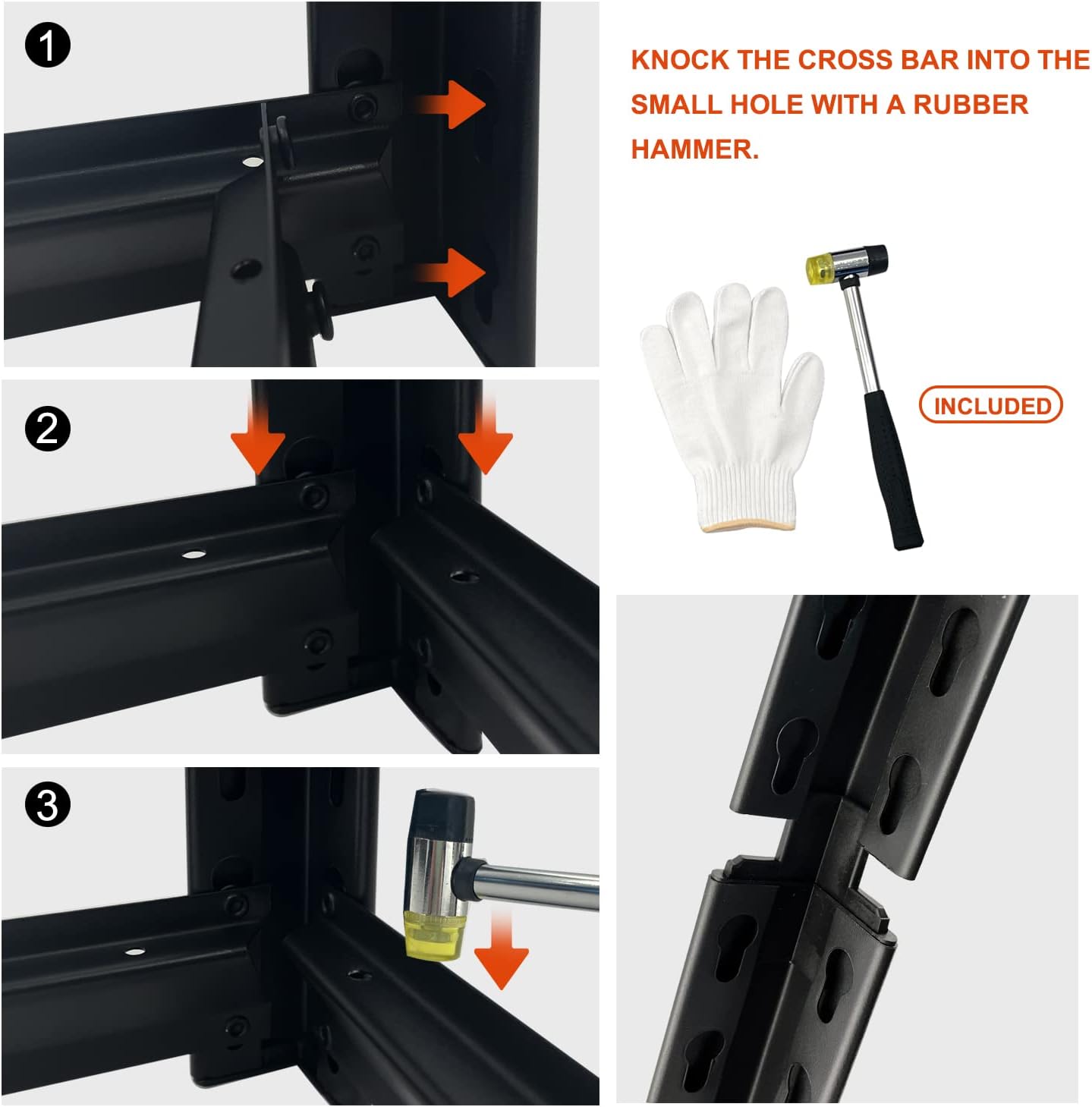 - SIMPLE ASSEMBLY: Assembly is a snap thanks to the boltless design, the package contains the parts of the shelf and all the tools you need, including hammer, gloves, 16pcs Rubber foot pad, 4pcs connector, so you can easy to put together without any other tools.