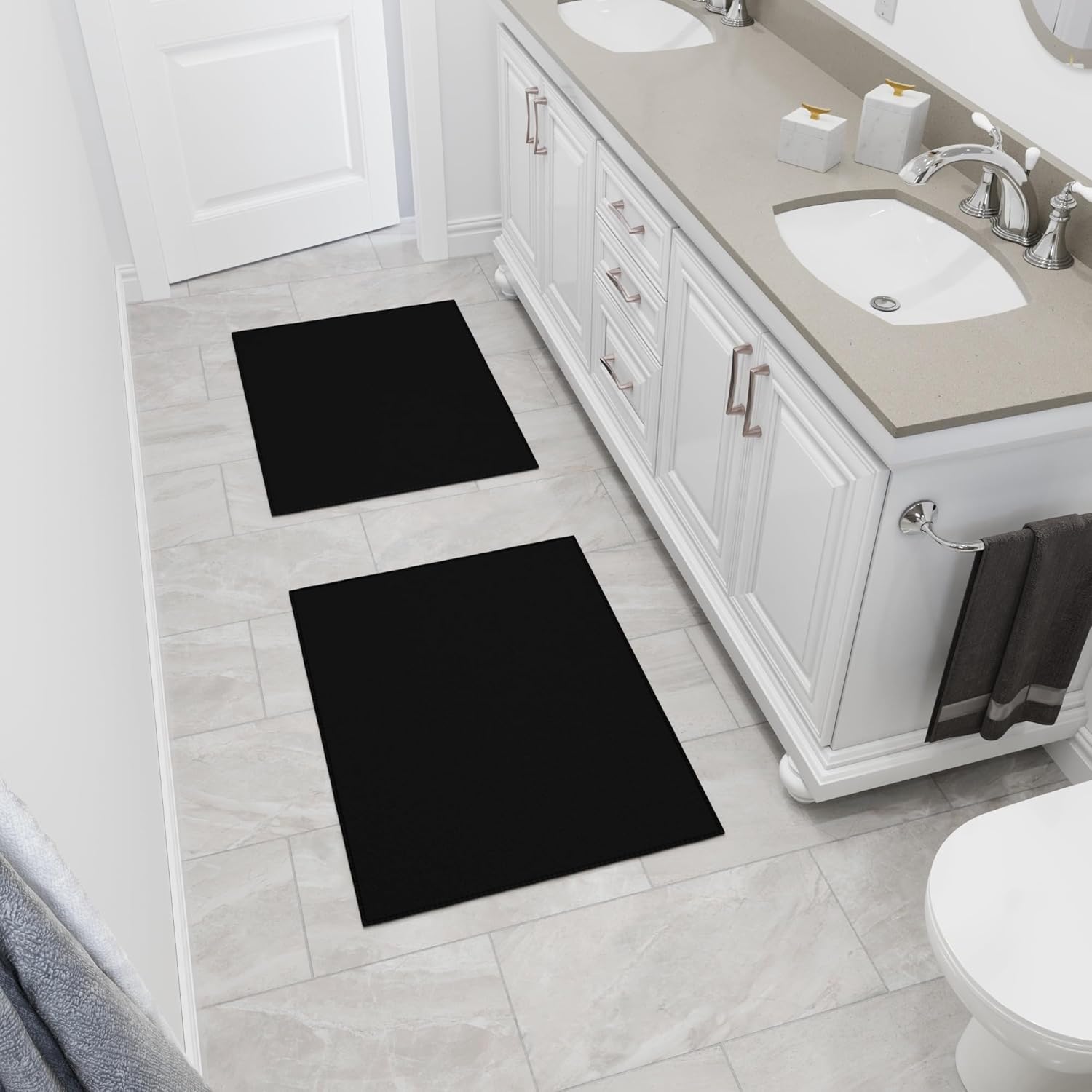 Ottomanson Rugs for Entryway 2'3" x 3' - 2 Pack Non Slip Solid Small Area Rugs Durable Front Door Mat Rug Stain Resistant Entrance Rugs for Bathroom Kitchen Bedroom & Living Room, Black