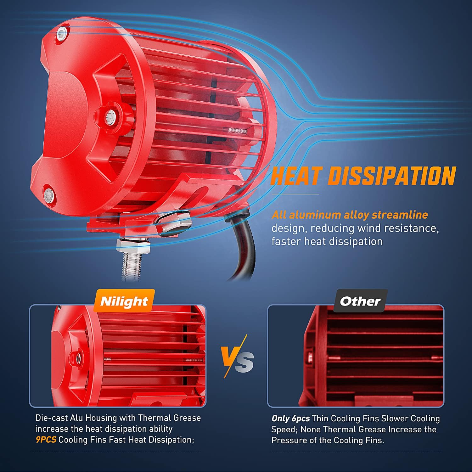 Nilight LED Light Bar 2PCS 60W 4Inch Triple Row Spot Flood Combo Lights w/Wiring Kit for Fog Driving Work Lighting on Off-Road Truck Tractor SUV ATV UTV Golf Cart Boats
