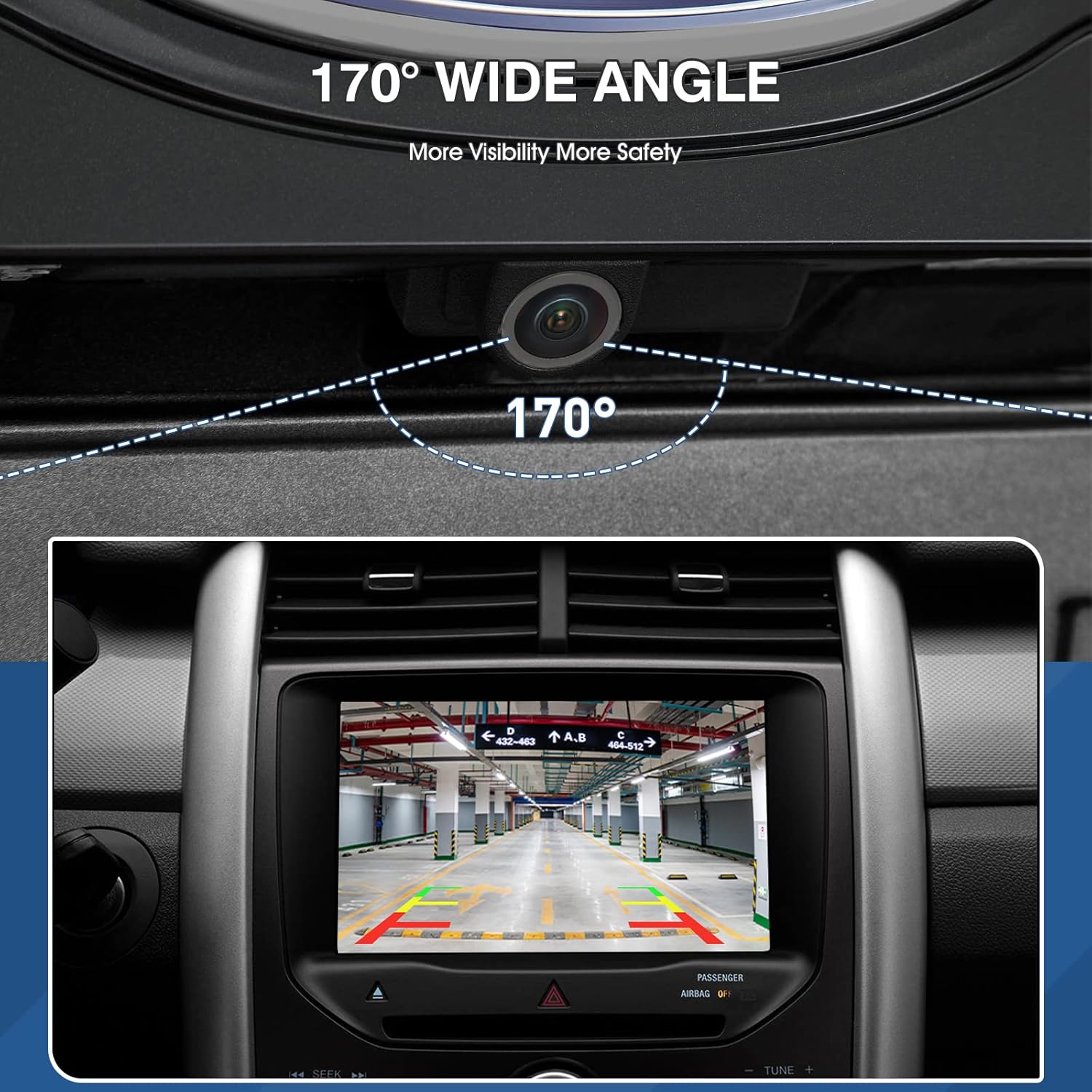 - [Clear Day and Night]: Edge Reversing Parking Assist Camera made of high quality material and lens, support 170Β° wide vision and provides the driver with a clear and accurate color reproduction whenever in the day or night.