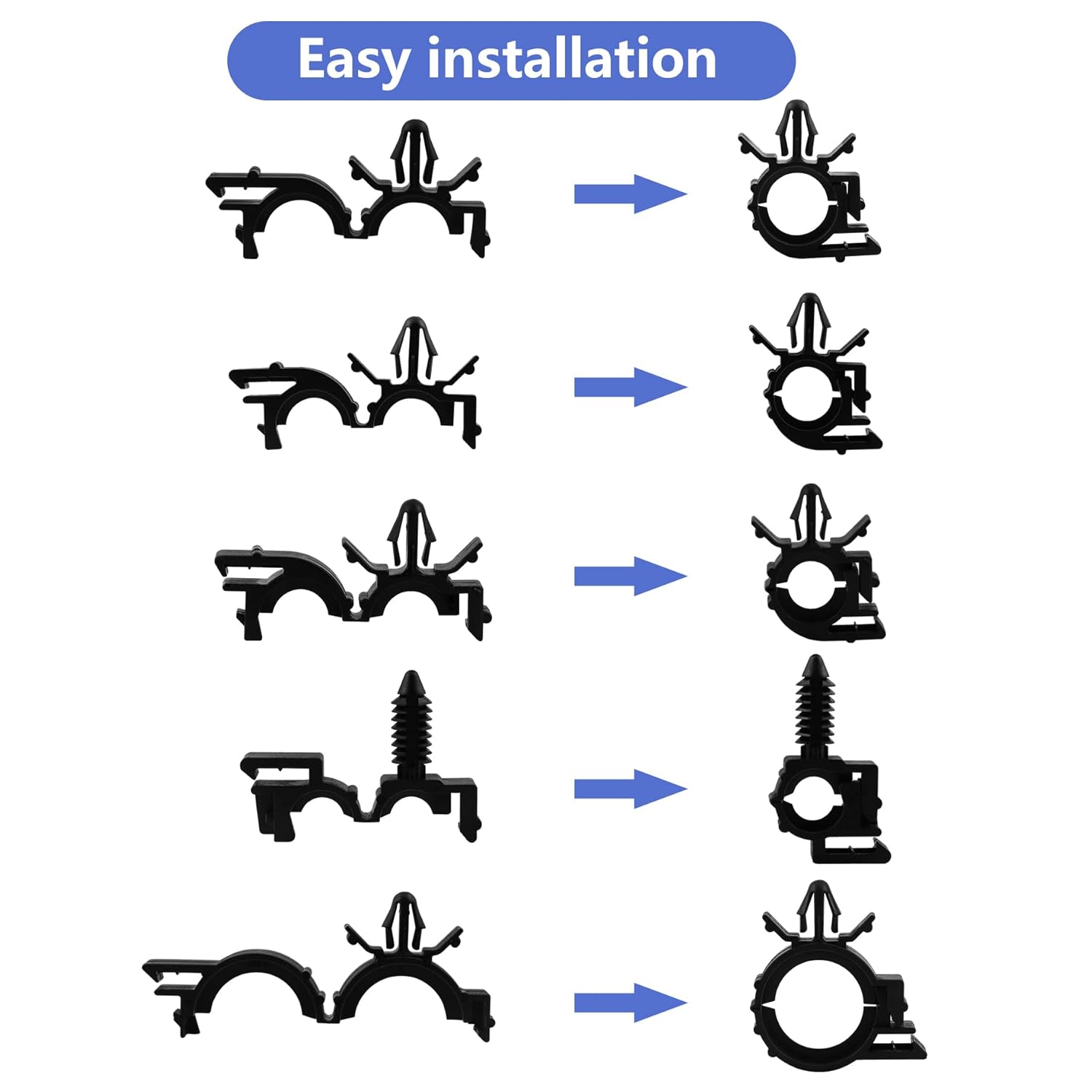- Great Assortment of Size: This Auto Wire Routing clips kit Fits Loom 3/8" To 3/4", includes 150pcs contains 10 different sizes car clips, universal shape and size will meet all your needs, replacement for Honda GM Mazda Jeep Wrangler Ford etc.