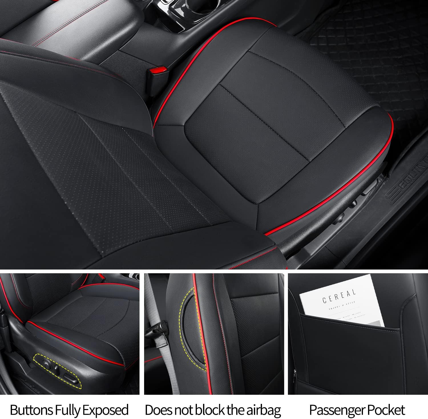 RISINGSTAR Terrain Seat Covers, fit for 2018-2024 GMC Terrain SUV with Rear Split Seats, Water Proof Faux Leather(Full Set, Black&Red)