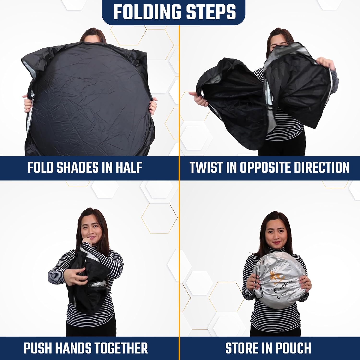 - Premium Car Sun Shield for UV Protection: Crafted with durable 240T polyester, our car sun shield effectively blocks sunlight and helps prevent interior damage. Use this sun shield for car windshield to maintain a cooler cabin and preserve your vehicle's interior.