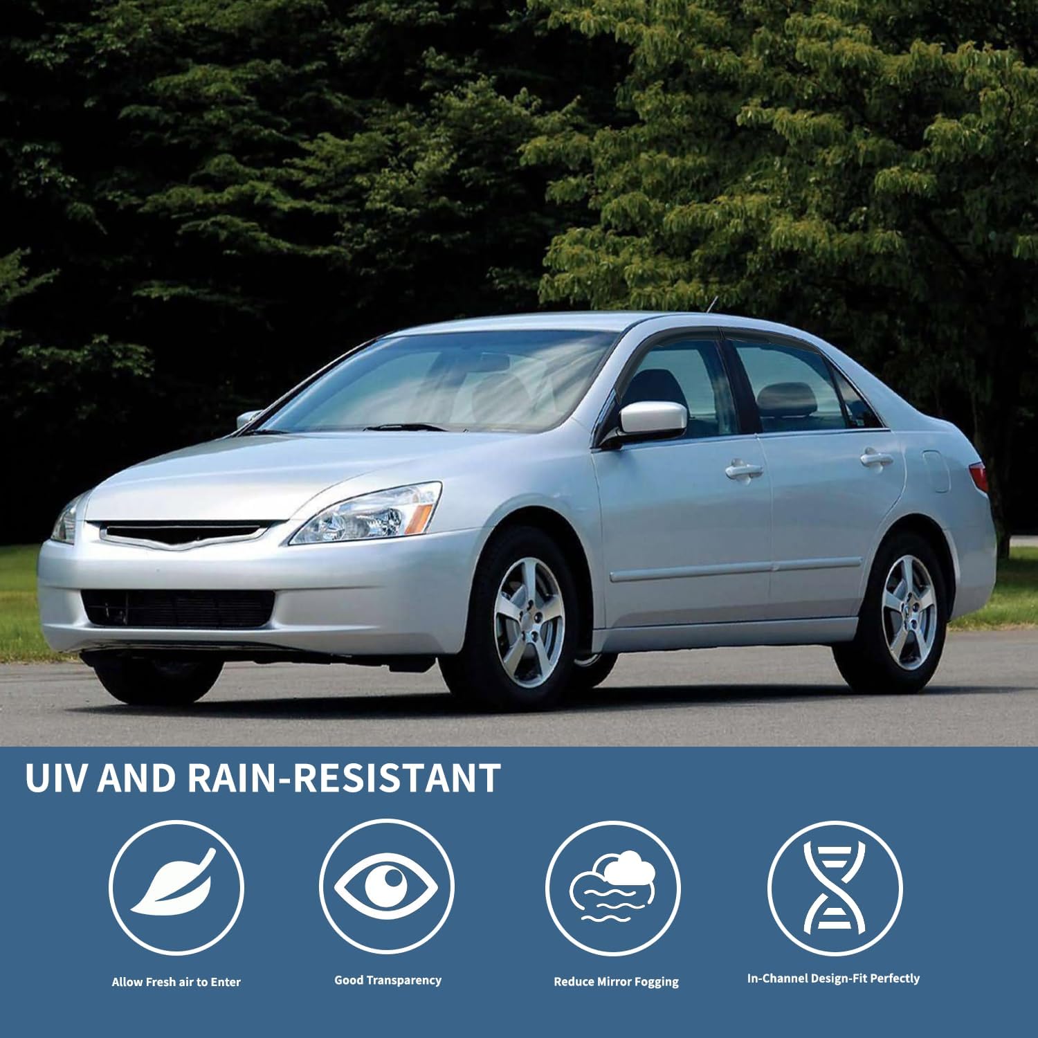 - ăSPECIFIC FITMENTă: 4pcs sun rain snow guard wind deflector vent shade side window visors compatible with Honda accord 2003 2004 2005 2006 2007 (03-07) 4d/4dr sedan model. Please check your vehicle's compatibility to ensure proper fitment