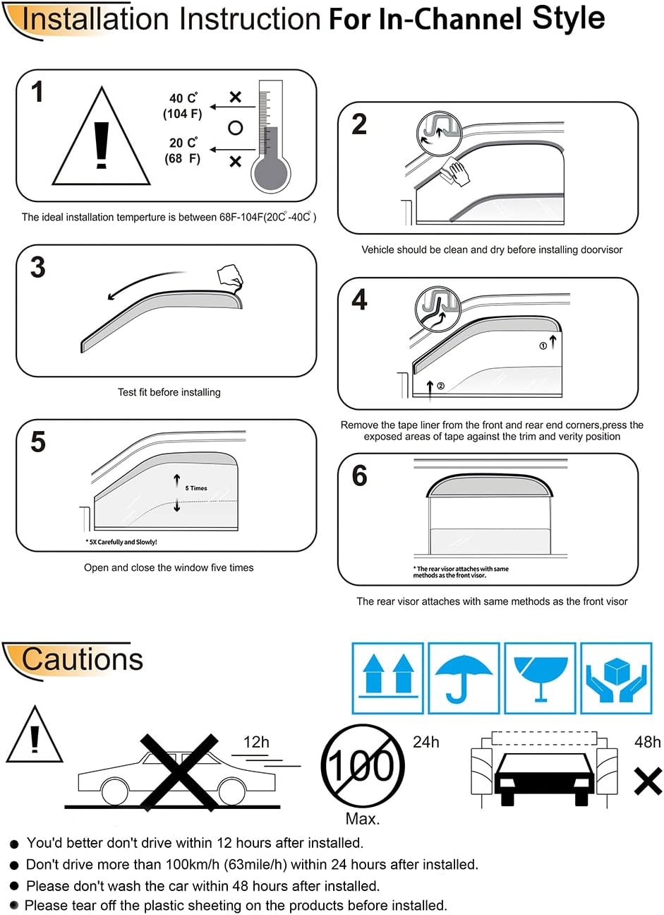 - 【EASY INSTALLATION】:Direct Tape-On design,easy Peel-N-Stick installation and no disturbed in the windows up and down.Easy to remove will not affect your car appearance(No Cutting & No Drilling)