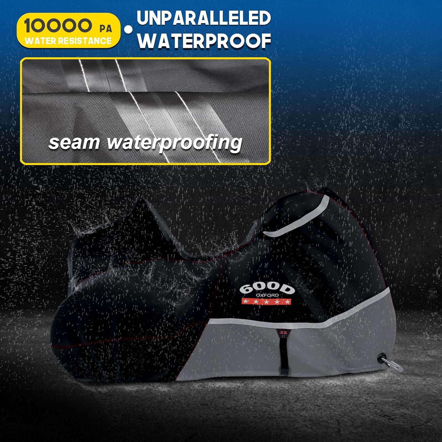 - 🛵【100% 600D Oxford cloth】: The motorcycle cover, weighing 6.8lb, is almost thicker and solider than those on the market. The fabric is resistant to aging and ripping, and UV proof, dustproof and rainproof.