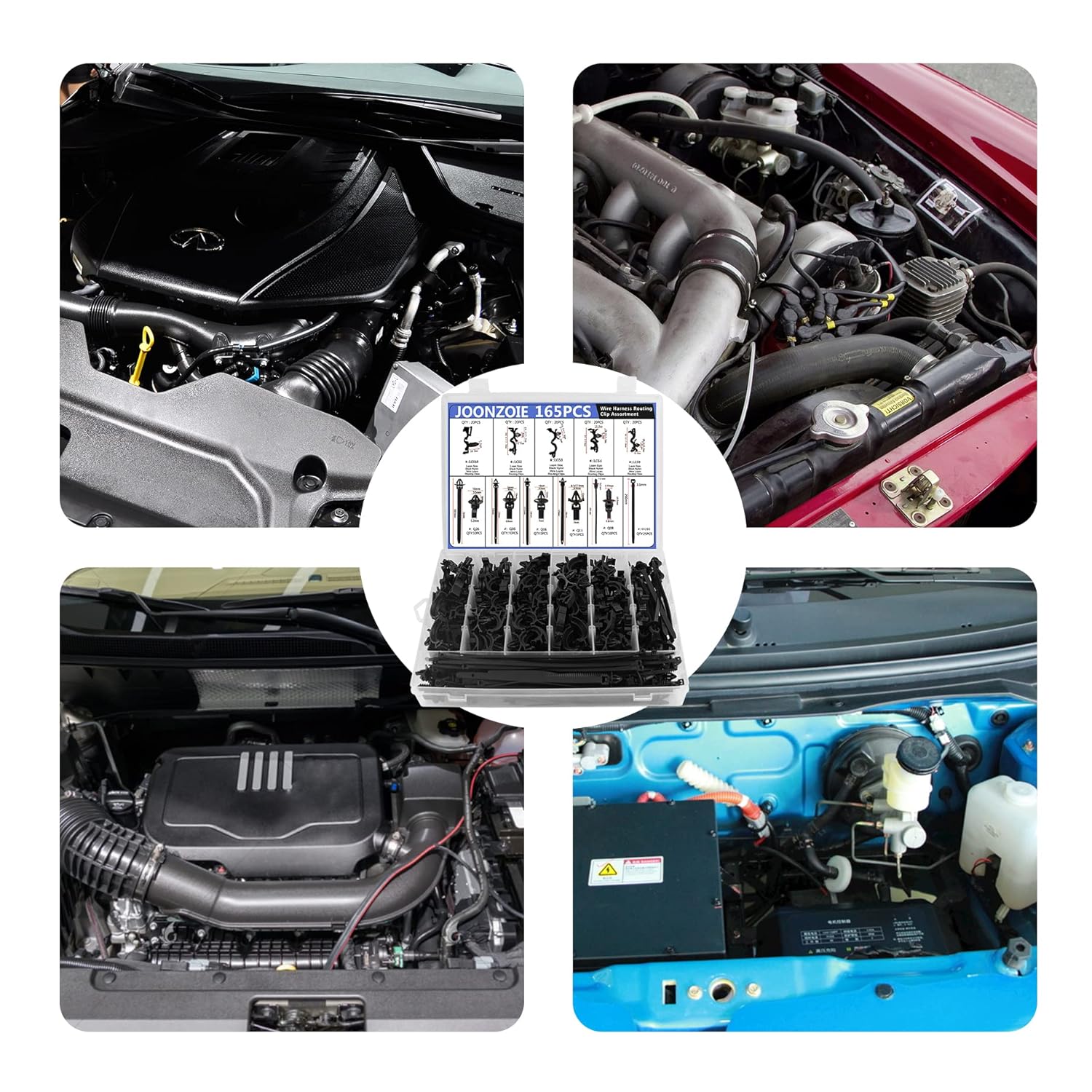 - Great Assortment of Size: This Auto Wire Routing clips kit Fits Loom 3/8" To 3/4", includes 165pcs contains 10 different sizes car clips, universal shape and size will meet all your needs, replacement for Honda GM Mazda Jeep Wrangler Ford etc