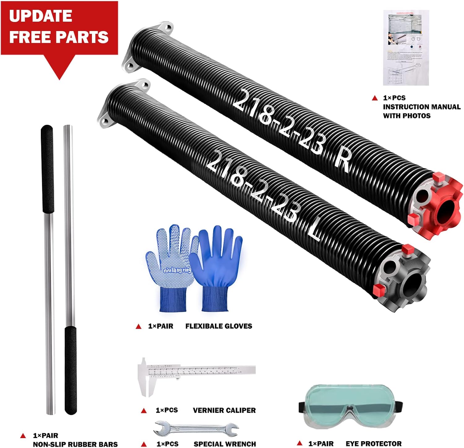 - [EXTRA FREE PARTS] : A pair of Garage Door Torsion Spring, A pair of 17.2’’ Non-Slip Winding Bars and Gloves/Eye protector/Professional wrench/Mini plastic Vernier Caliper, and Installation Instructions are included in the package, with the professional tools DIY is much easy to learn installing after receiving the product.