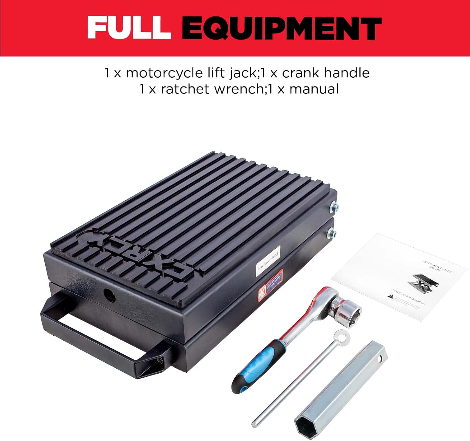 - Equipped with Ratchet Wrench&Handy Handle : In addition to the crank handle,we also have an extra ratchet wrench,which is easier to use than crank handle,you will spend less effort to lift the motorcycle up quickly.Besides, the convenient handle makes it easier to move the jack