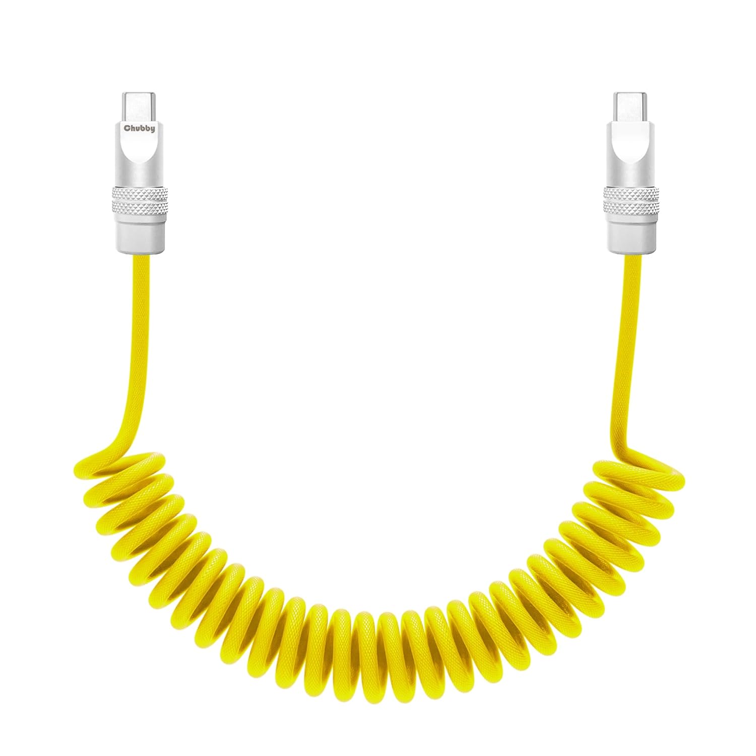 chubbycable Curly Chubby - Retractable Fast Charging Cable 240W Coiled Charger Cord for Car Durable USB-C Cable for Phones, Tablets and More, Yellow, Type-C to Type-C, 1.3FT-2.3FT