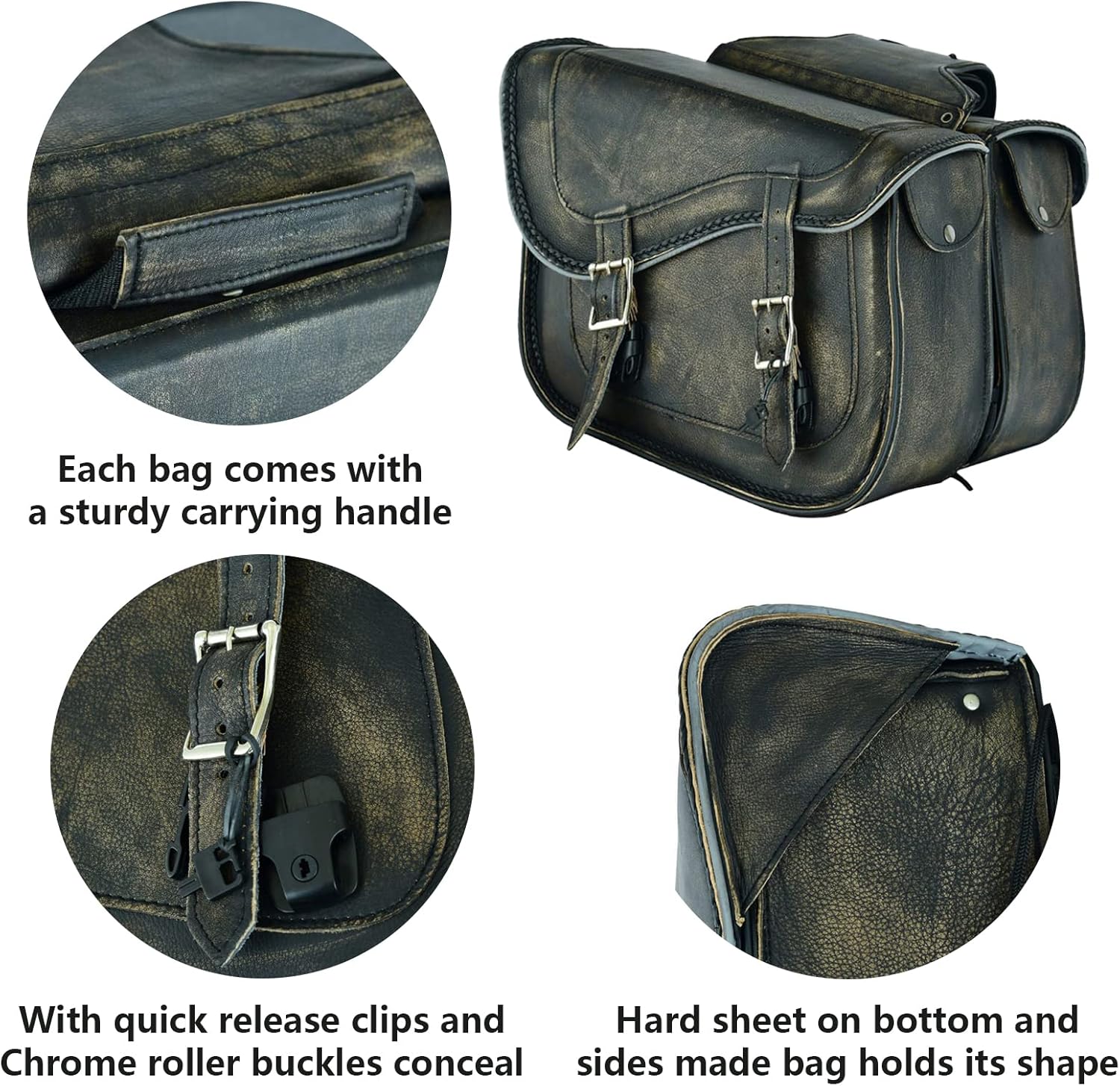 - 【Leather Material】This motorcycle saddlebags is made up of soft and durable heavy-duty leather. The reinforced sewing and moderate thickness make our motorcycle saddle bag can always keep its shape and longer service life.