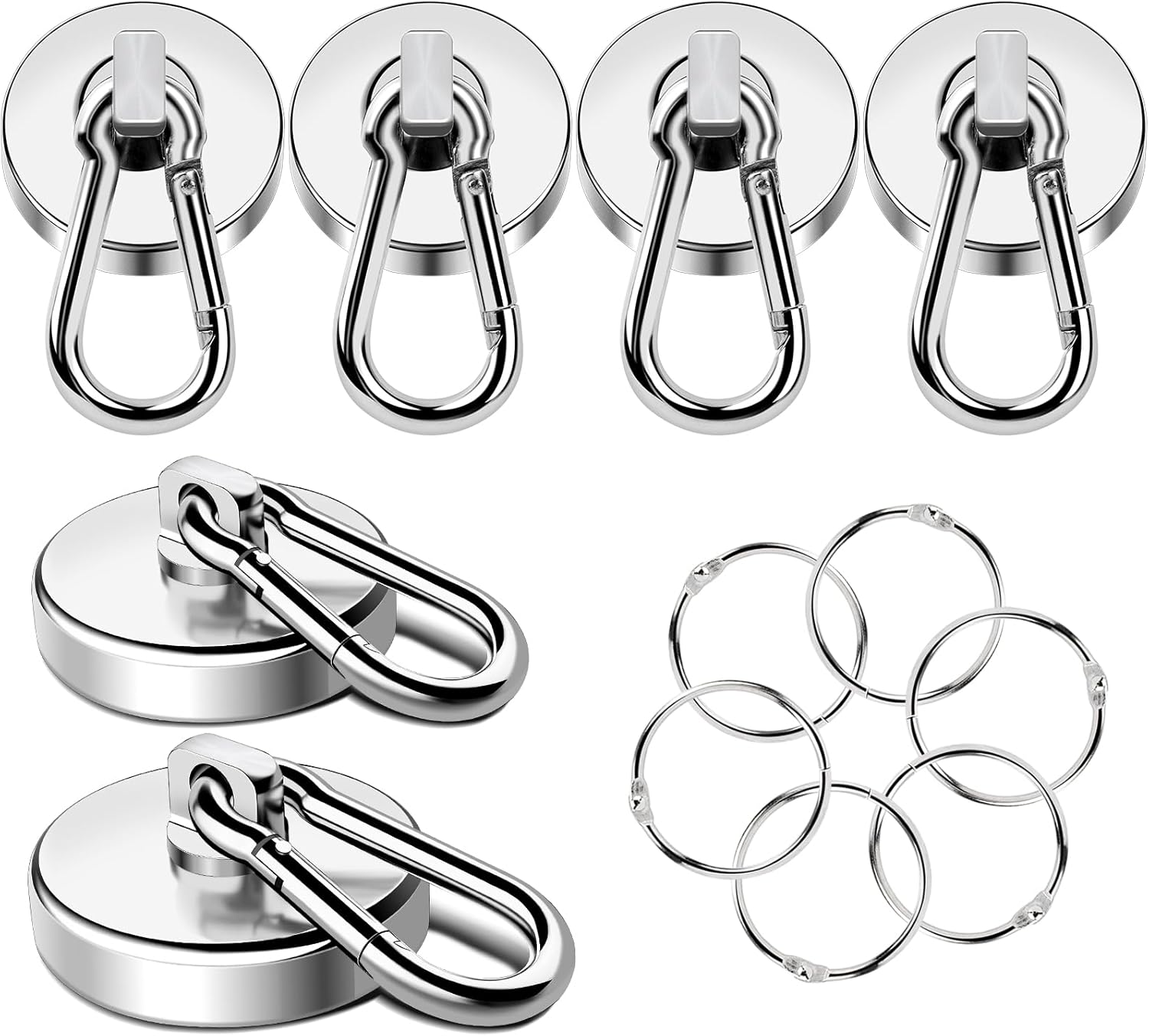 MIKEDE Strong Magnetic Hooks, Heavy Duty 110LBS+ Swivel Neodymium Magnets with Carabiner Hook, Hooks for Hanging, Curtain, Home, Workplace - 6 Pack