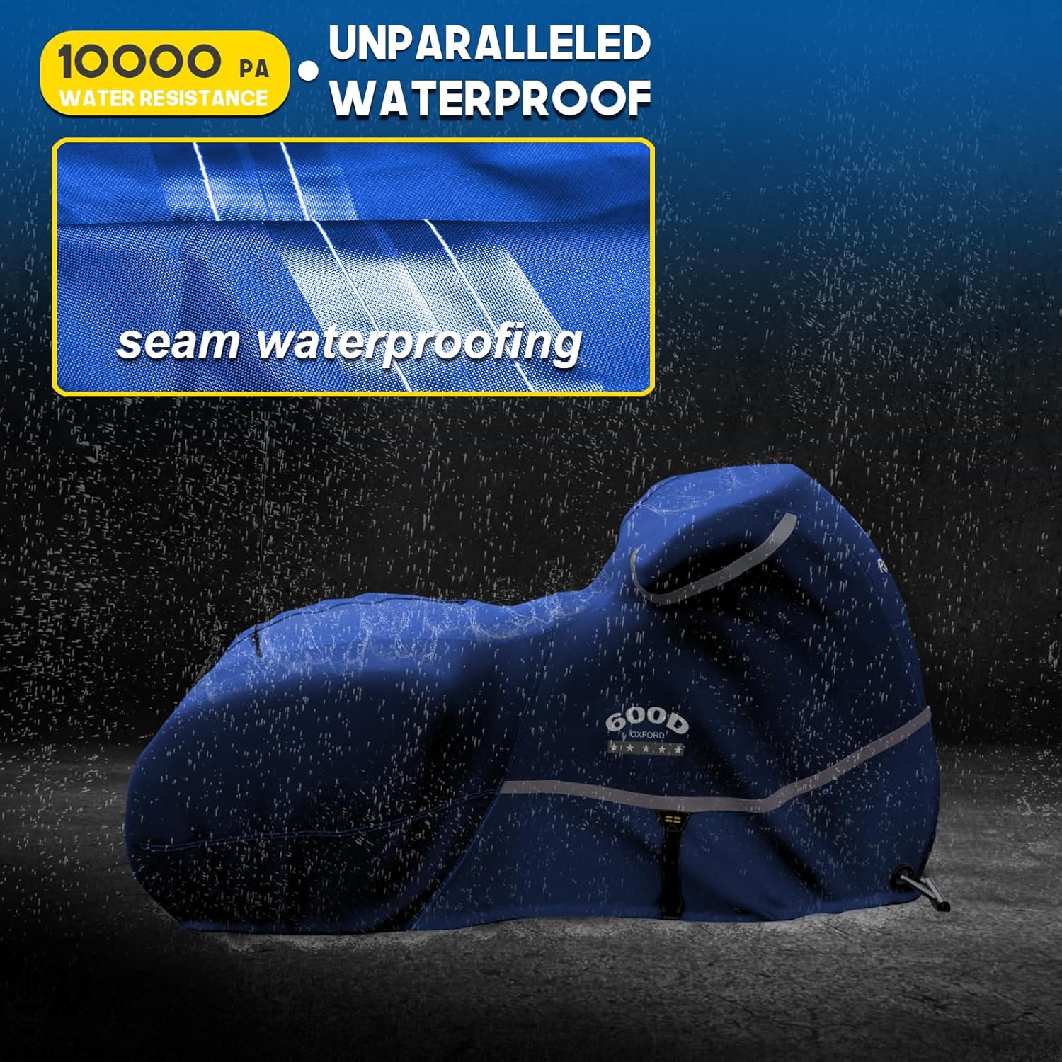- 🛵【3D CUT】This cover is designed for motorcycle models with side boxes.SIZE: 107"L * 43"W * 55"H,Suitable for most motorcycle of touring models,such as Harley Davidson ,HONDA,INDIAN,DUCATI,BMW,SUZUKI,Triumph Tiger,KTM,YAMAHA,KAWASAKI.