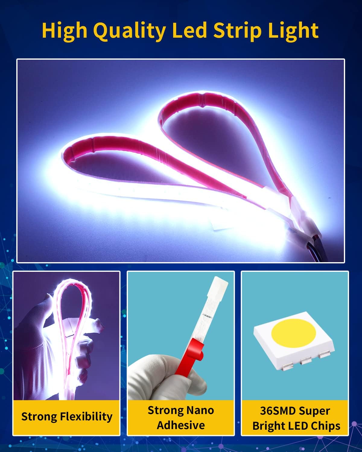 - 【Flexible and Cuttable】Our golf cart lights can be cut every 3 LEDs to your required length,flexible and ultra thin, can be easily installed in between the gap and virtually invisible.