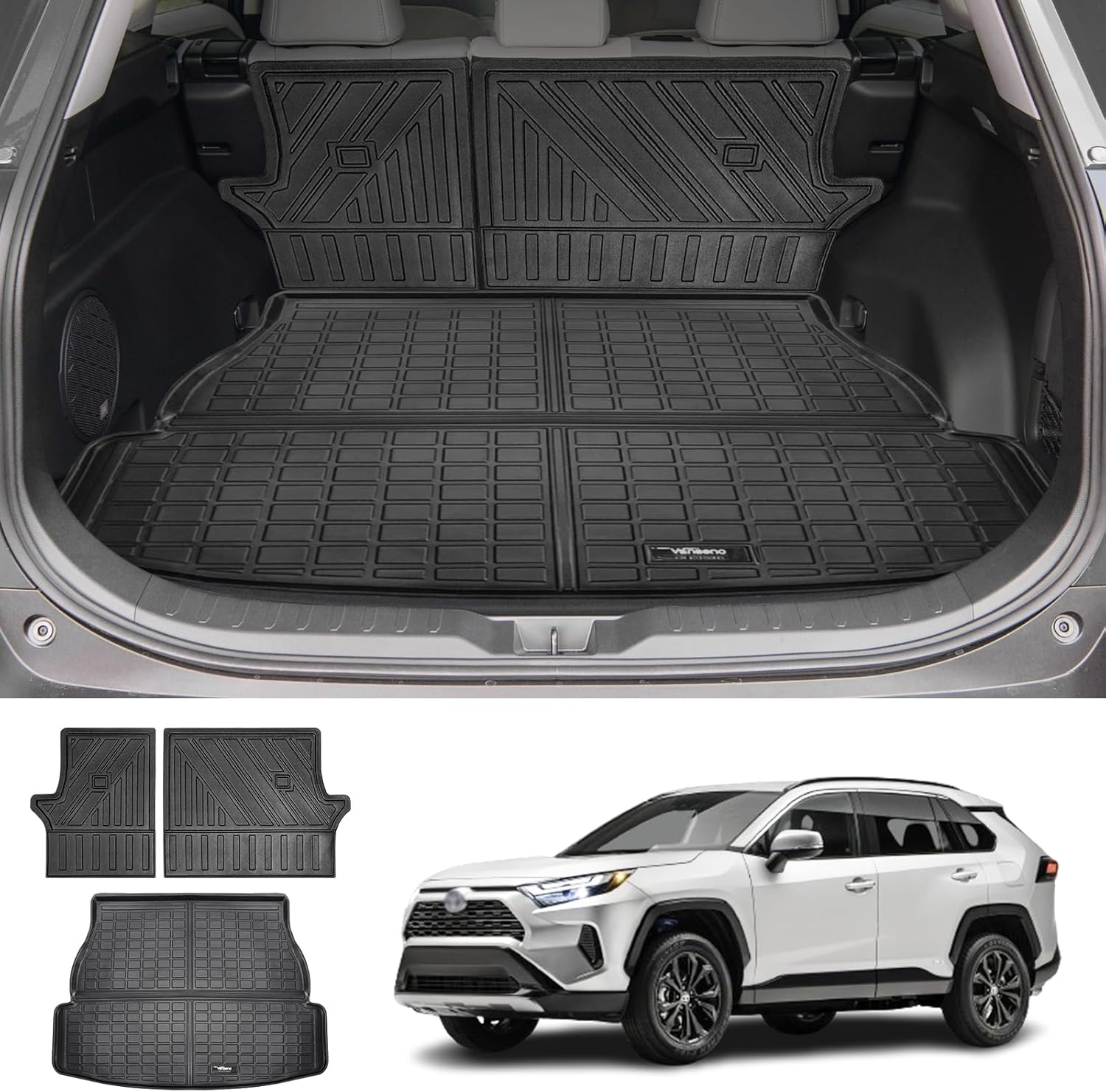Vanseno Compatible for 2019-2024 2025 Toyota Rav4 Cargo Mat Rear Trunk Mat Cargo Liner Backrest Mats TPE All Weather Protector for 2019-2024 2025 Toyota RAV4 Accessories (Backrest Mats+Trunk Mat)