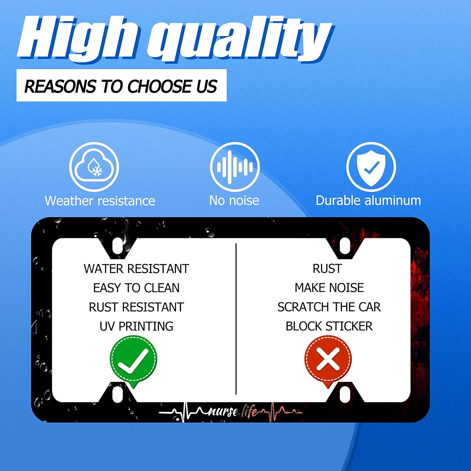 Nurse Life License Plate Frame Beautiful Text License Plate Stainless Steel Parts Funny License Plate Decorative with Screws Size 12.3" x 6.3" Men Women