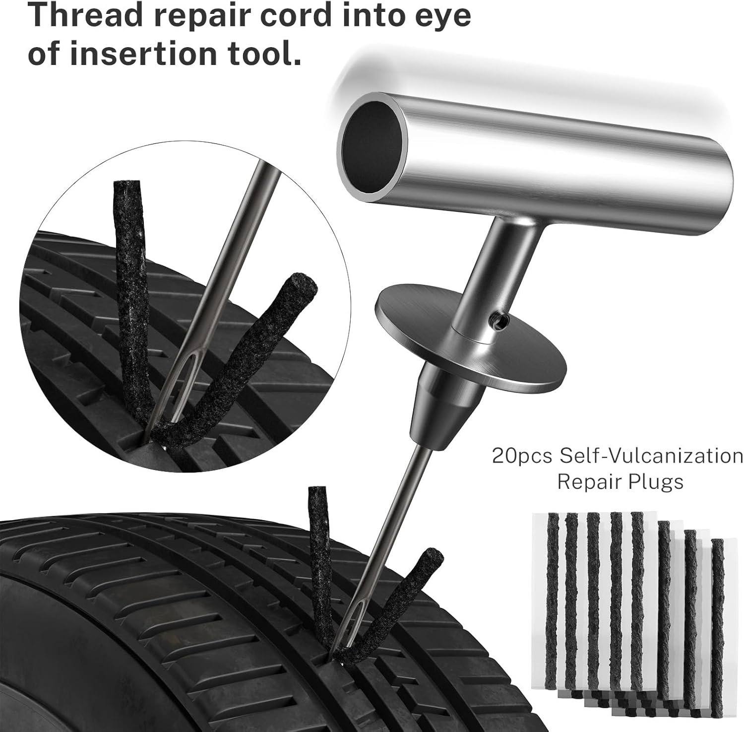 Flat Tire Repair Kit with Plugs 31 Pcs for Car, Motorcycle, ATV, Jeep, Truck, Tractor Flat Tire Puncture Repair