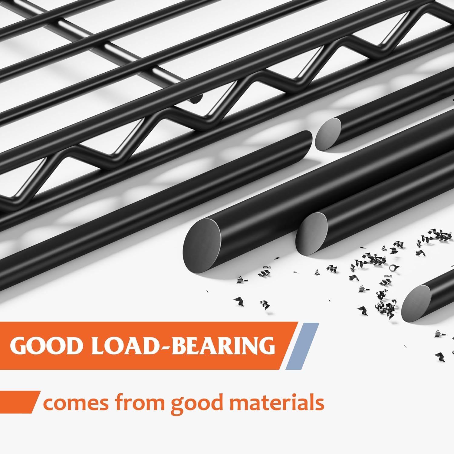 - ăExtremely Durable & Heavy Duty Steel Metal shelves ăThis storage rack is made of heavy-duty steel,and equipped with an advanced powder coating process, which is not only sturdy and durable but also is rust resistant and oxidation resistant.170lbs single-layer bearing capacity can meet the storage needs of most families