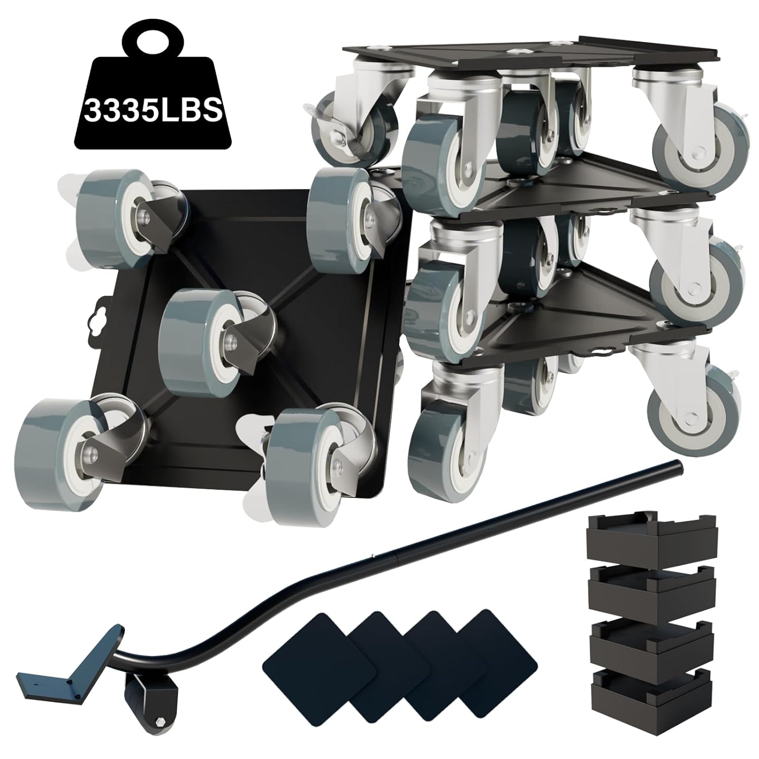 - High Material Furniture Dolly: It is absolutely the first consideration to ensure that the furniture and floor are not damaged. The furniture lifting crowbar is made of durable steel, and has a non-slip design. The surface of the 4 sliding rails is made of thickened carbon steel, which will not damage the furniture. Each slide is inlaid with 5 360Β° Rotation Wheels universal wheels, a total of 20 universal wheels, flexible and durable, up to 3335 lbs load-bearing, it will not damage the floor.