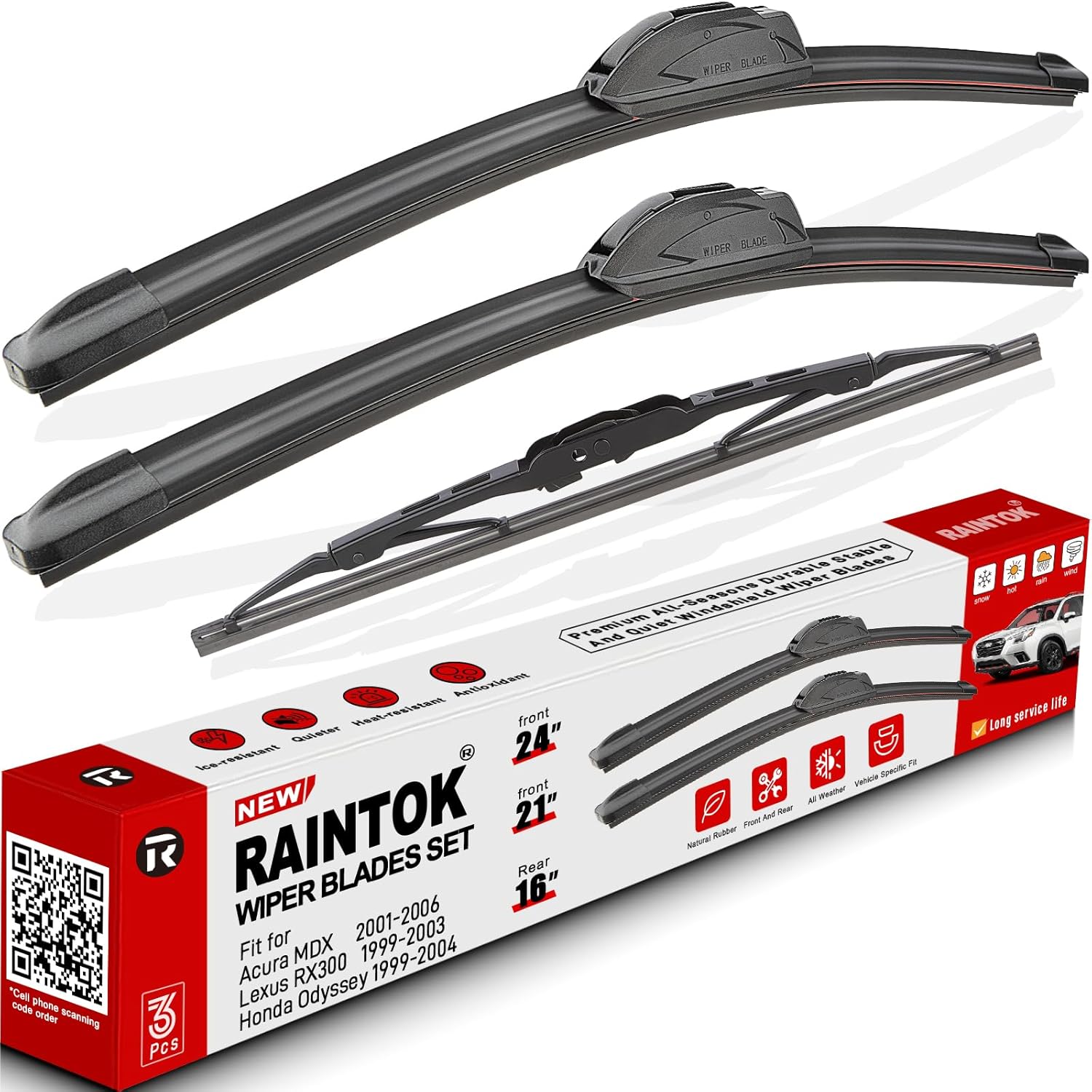 - {FITMENT3}: Replacement for Lexus RX300 1999 2000 2001 2002 2003 24inch + 21inch front with 16inch rear windshield wiper blades.