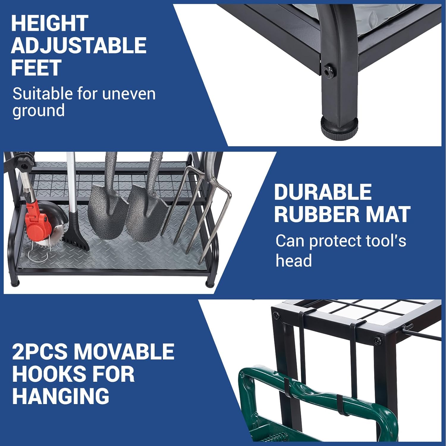 - STRONG DURABLE STEEL CONSTRUCTION: This garage tool rack and shed organizer made of a durable coated steel frame thatβs sturdy enough to withstand indoor or outdoor use. The thickness of the steel pipe has been upgraded to 2 cm, making it more sturdy and durable. You won't worry about collapsing like a plastic organizer