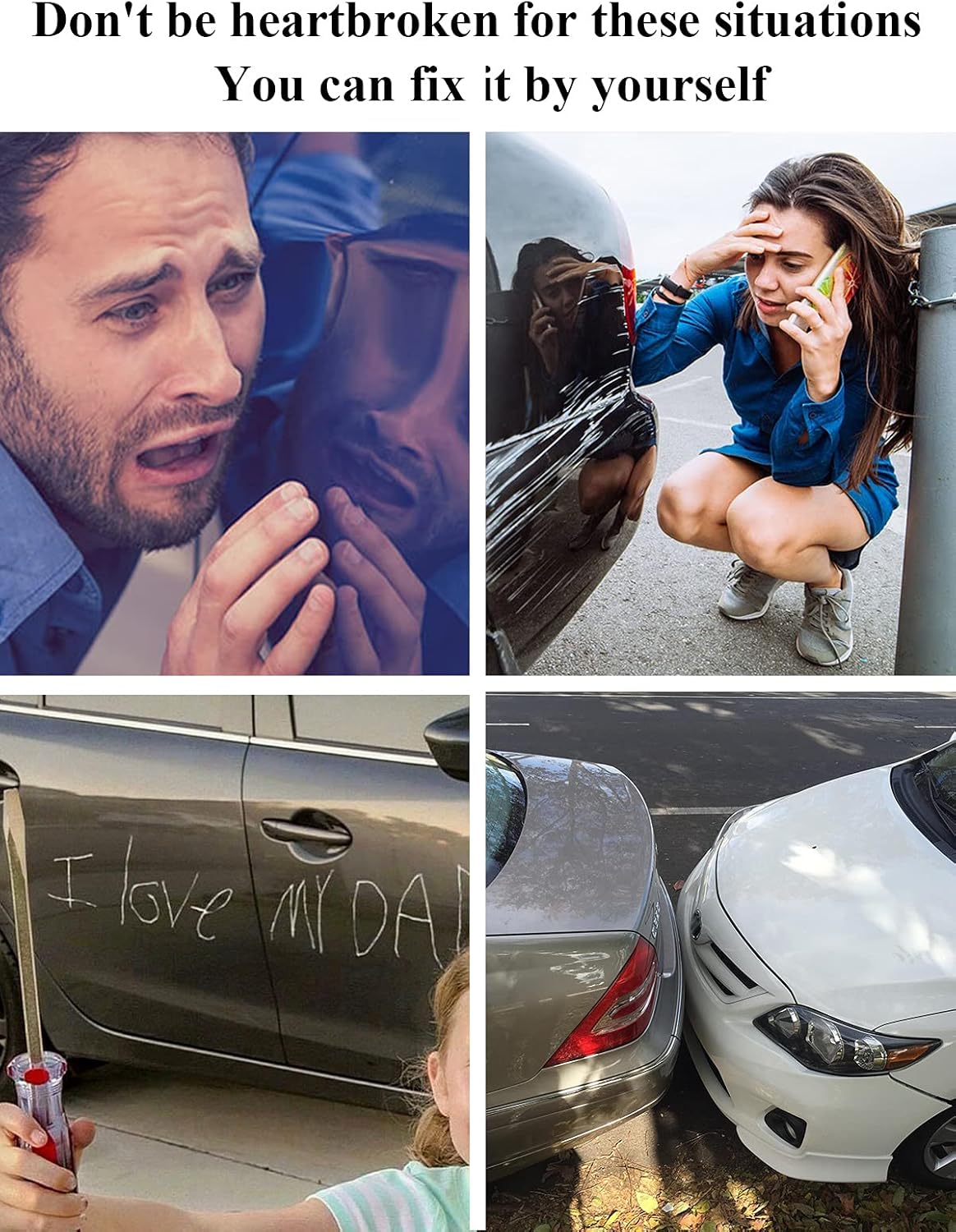 - The daily drive gets rock chips and scratches: Rock chips on the bumper, road rash on rims, the front and passenger side all get many scratches. You will prefer SYOAUTO platinum white car touch-up paint to the black dings in your platinum white paint