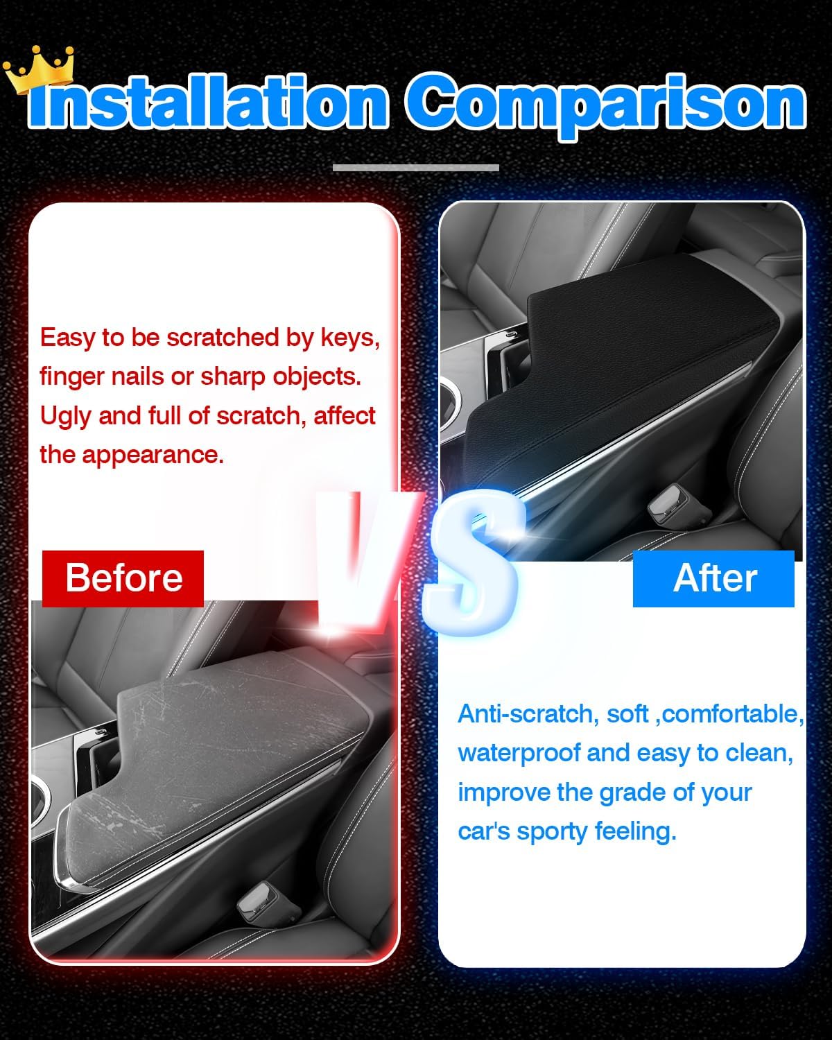 - All-round Protection:Protect the armrest lid from scratches and abrasion caused by pets, nails, and sticky fingers. The armrest cover gives you softness to the touch as well as meets your need to keep the middle console clean and brand new.