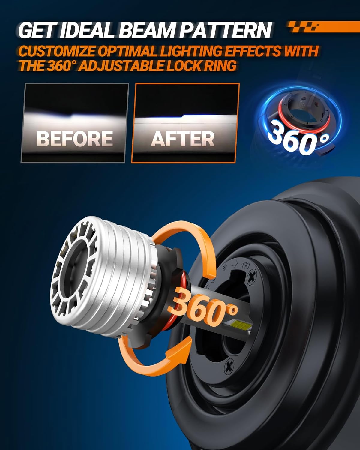 - Over 50,000 Hours Long Lifespan: 9005 H11 combo with the double cooling copper tube and 20,000 RPM cooling turbo fan helps speed down the core temperature, reached a perfect balance of long-lasting lighting and service life