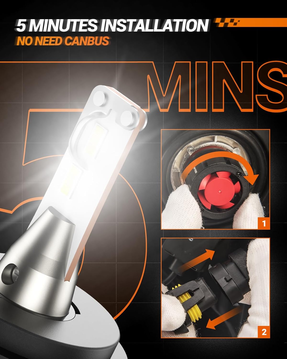 - No More Dark Spots: H4 bulbs with 360°illumination and a 0.04-inch ultra-thin board design, H4/9003 fog bulbs ensure no black spots, shadows, or glare, so you can see clear the road ahead, also without blinding other drivers to ensures absolute safety for you and oncoming drivers