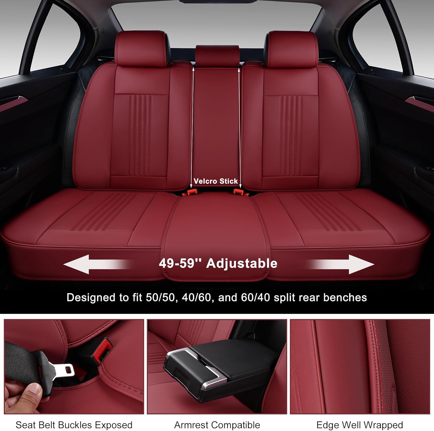 - Easy to Install: Each pack comes with full-set car seat covers (front and rear seat covers), a hardware bag of hooks and chucks, and an installation manual. Designed to fit 50/50, 40/60, and 60/40 split rear benches. Please confirm the width of the rear seats is less than 56 inches before purchase