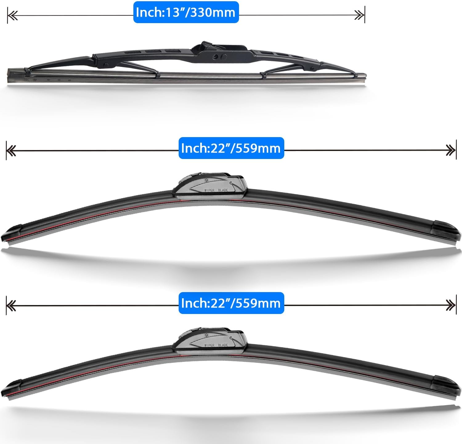 - {WIPER PERFORMANCE}: Natural rubber material making sure the wiping is the best, quiet wiping without judder or squeaking, resistant and a long service life.
