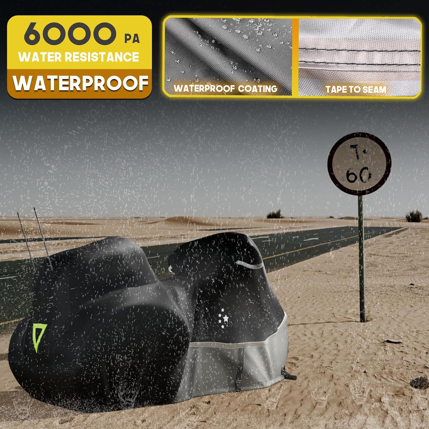- Greater Material: The motorcycle covers are made from 420D Oxford Fabric.It helps protect your motorcycle's varnish from rain, heat, sun, snow, scratches and etc., very strong and long lasting.