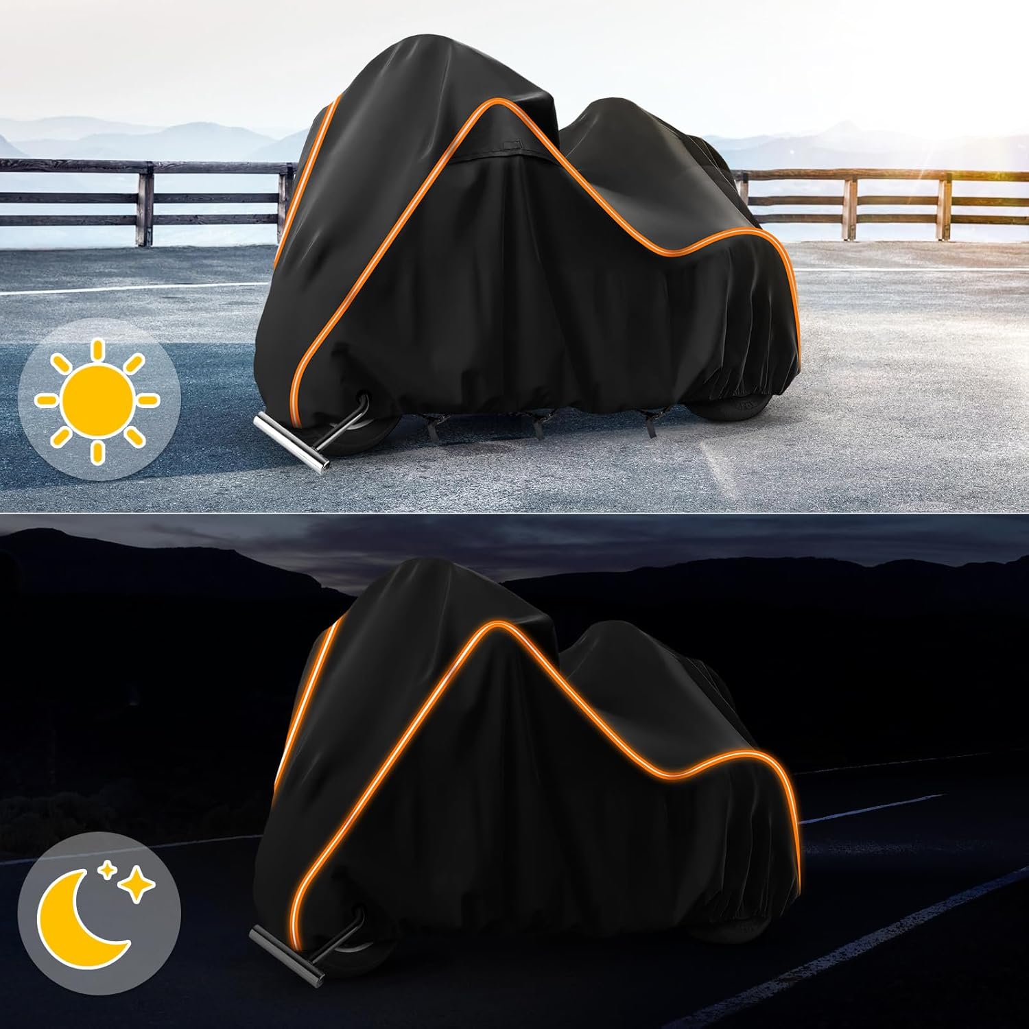 - 【Compatible with】The motorcycle cover compatible with the Trike Models including freewheeler, Tri Glide, and CVO Version, compatible with Goldwings, Chidftain, Challenger, Elite.Please make sure your bike model and the length before purchase and make sure your motorcycle body is dry and clean before putting on this bike cover.