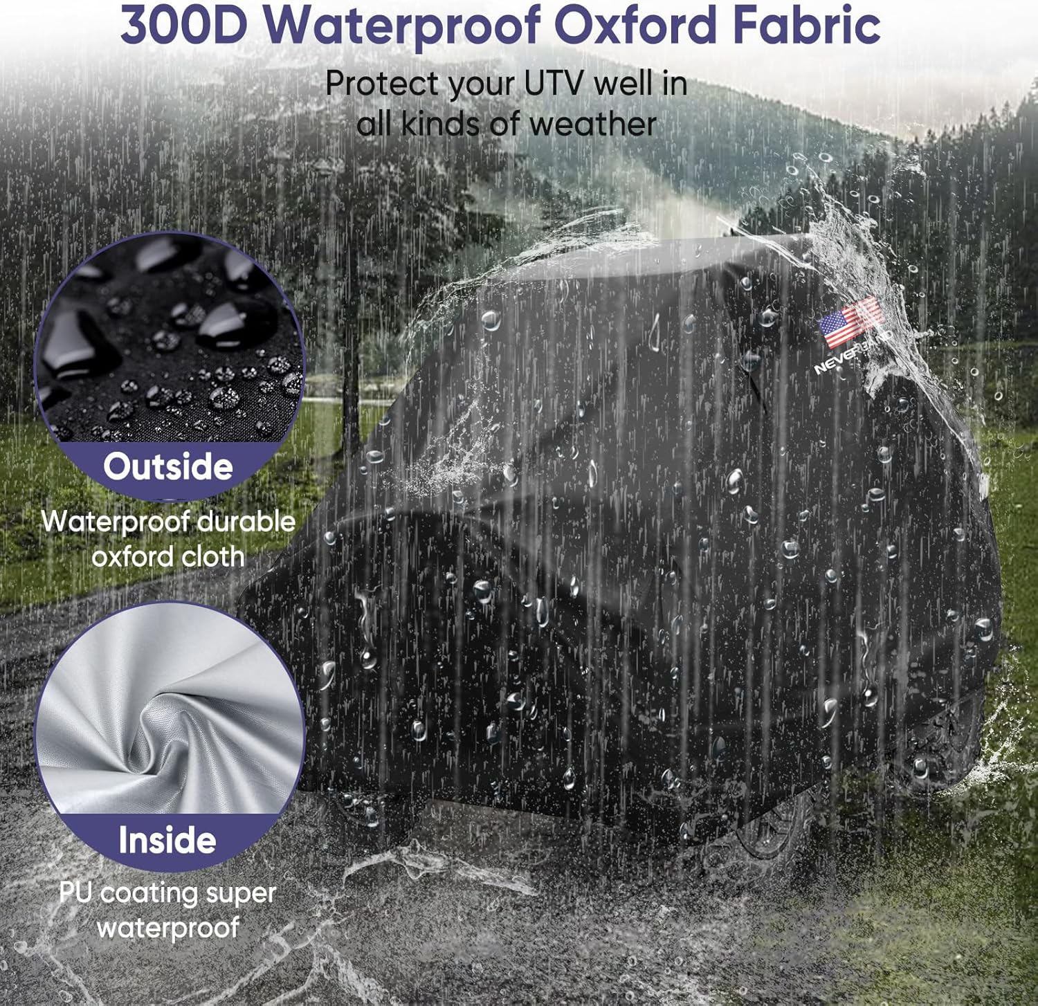 - Durable Materials: This utv cover is made of 300D oxford material, the elastic band around the bottom and adjusted straps in the middle of the bottom better fit to the vehicle like a glove and stay in place