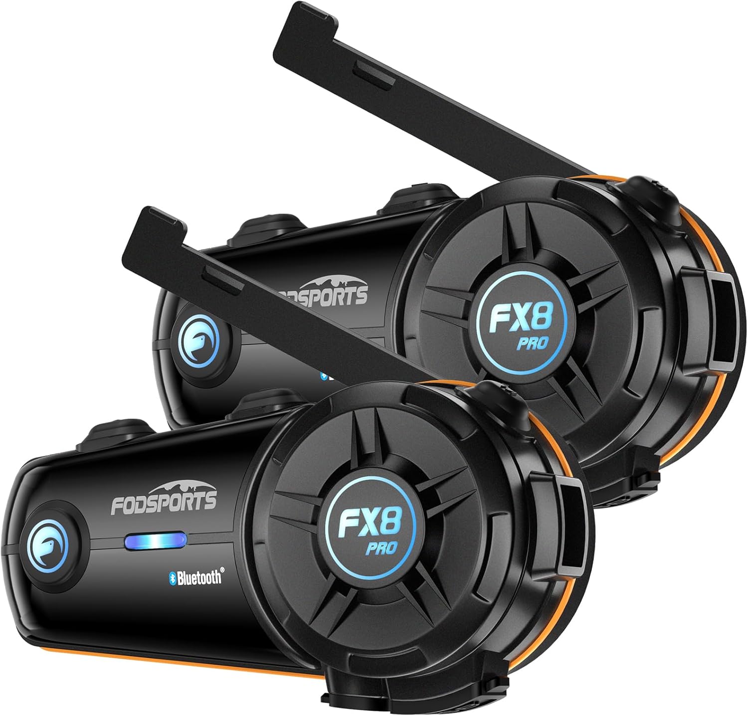 Fodsports FX8 Pro Motorcycle Communication Systems with Customized HRSQS Speakers, Dual-Chip Audio Multitasking, One-Click Fast Pairing, Music Sharing, FM 10 Riders Group Intercom, 2 Pack
