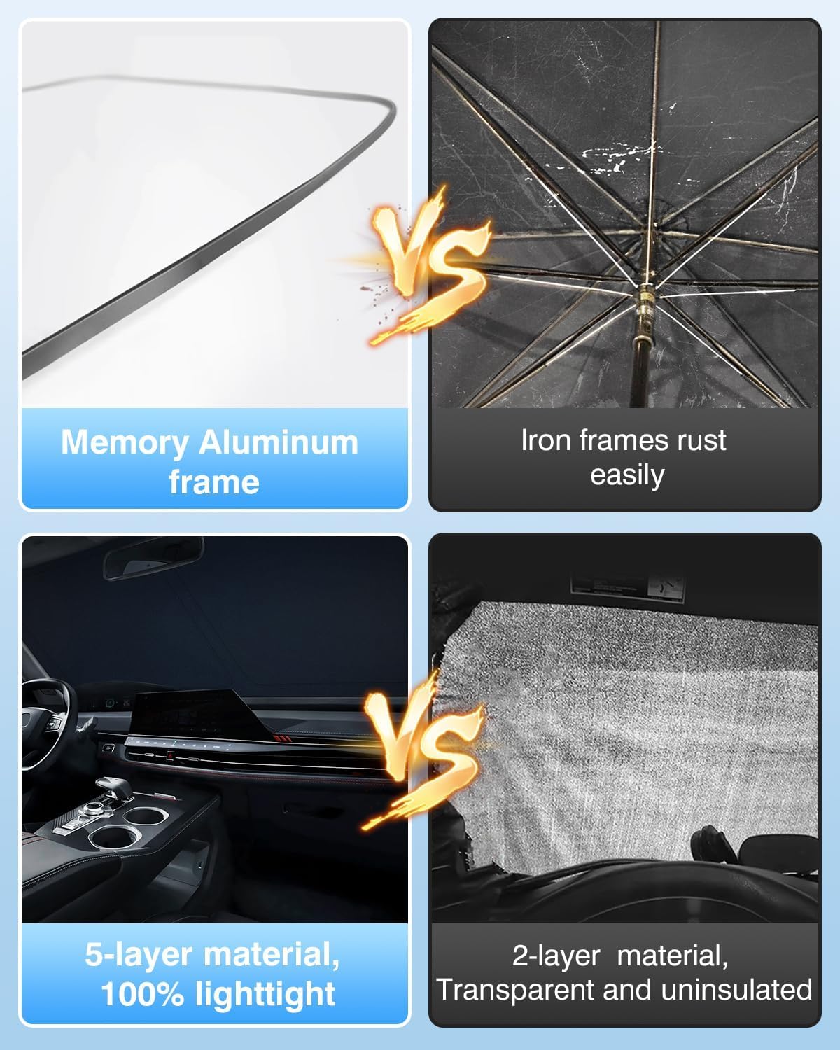 - 【5-Layer Insulation】Advanced 5-layers material, effectively block 99% UV rays and heat, reducing temperature by up to 50-59°F. Keep your vehicle inside cool and prevents the inside of your car from over-heating.