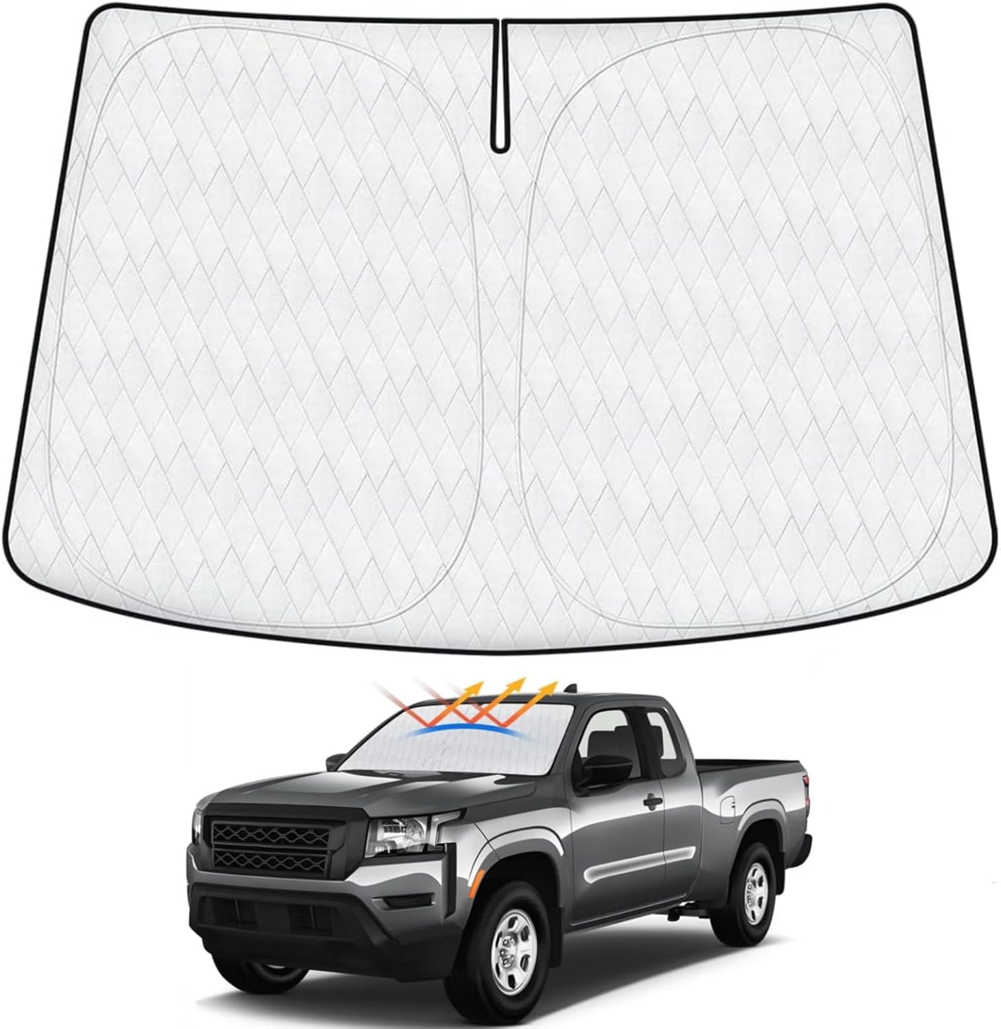 - 【Real Custom Design】This windshield sunshade is tailor-made for Nissan Frontier 2022 2023 2024 2025 2026, fits perfectly with the front windshield without any gaps, no any size issues absolutely.